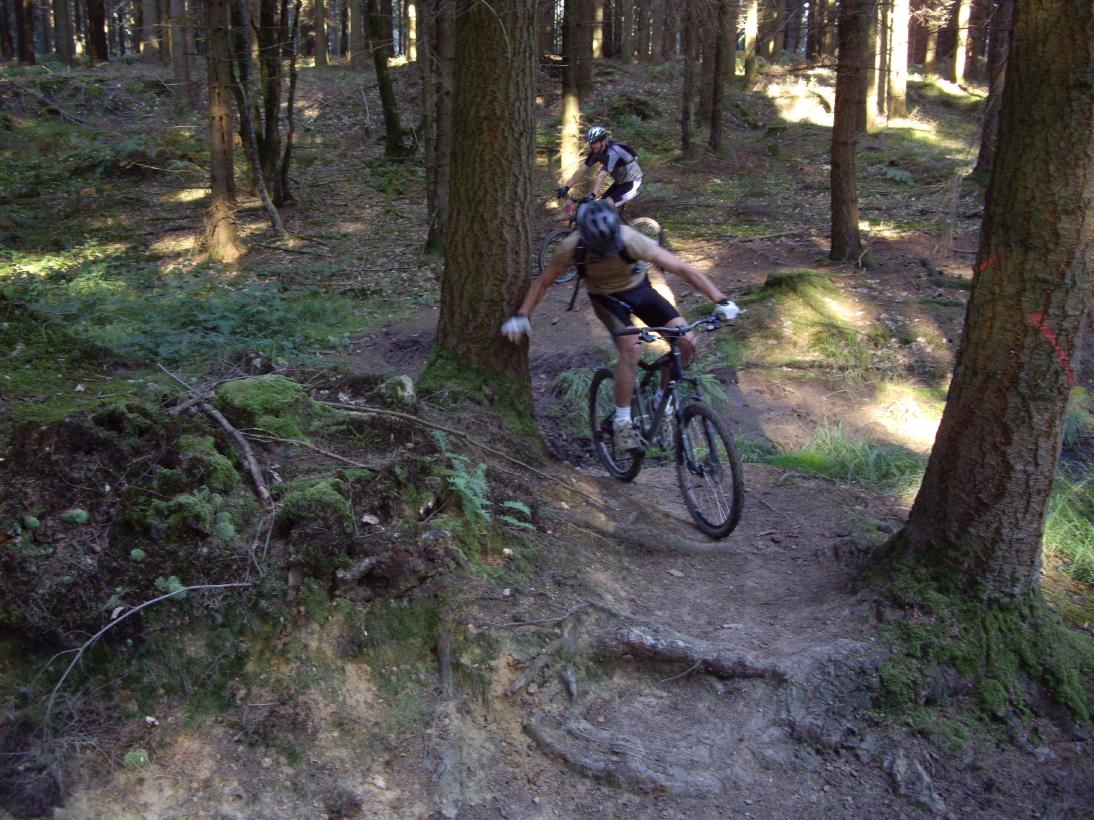 Et là, on n'a pas chomé, et attaqué la fin du parcours pour essayé de faire exploser ce jeune branleur...sans résultats flagrants! Les 2 dernières montées ont été avalées tambour battant, avec enchainement dans les descente, ou par 2 fois je manquai de me mettre au tas...et l'autre qui avait l'outrecuidance de suivre avec un semi rigide de m...