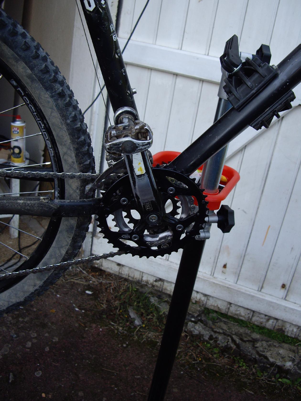 Résultat, les clés pretées par distri-cycle (bah oui maintenant il évite les décaths!!!), n'étant pas les bonnes, je décide de monter les plateaux (tant pis pour les manivelles neuves) sur l'ancien pédalier. Comme rien ne pouvait tourner rond, le plateau du milieu ne logeait pas correctement!!!