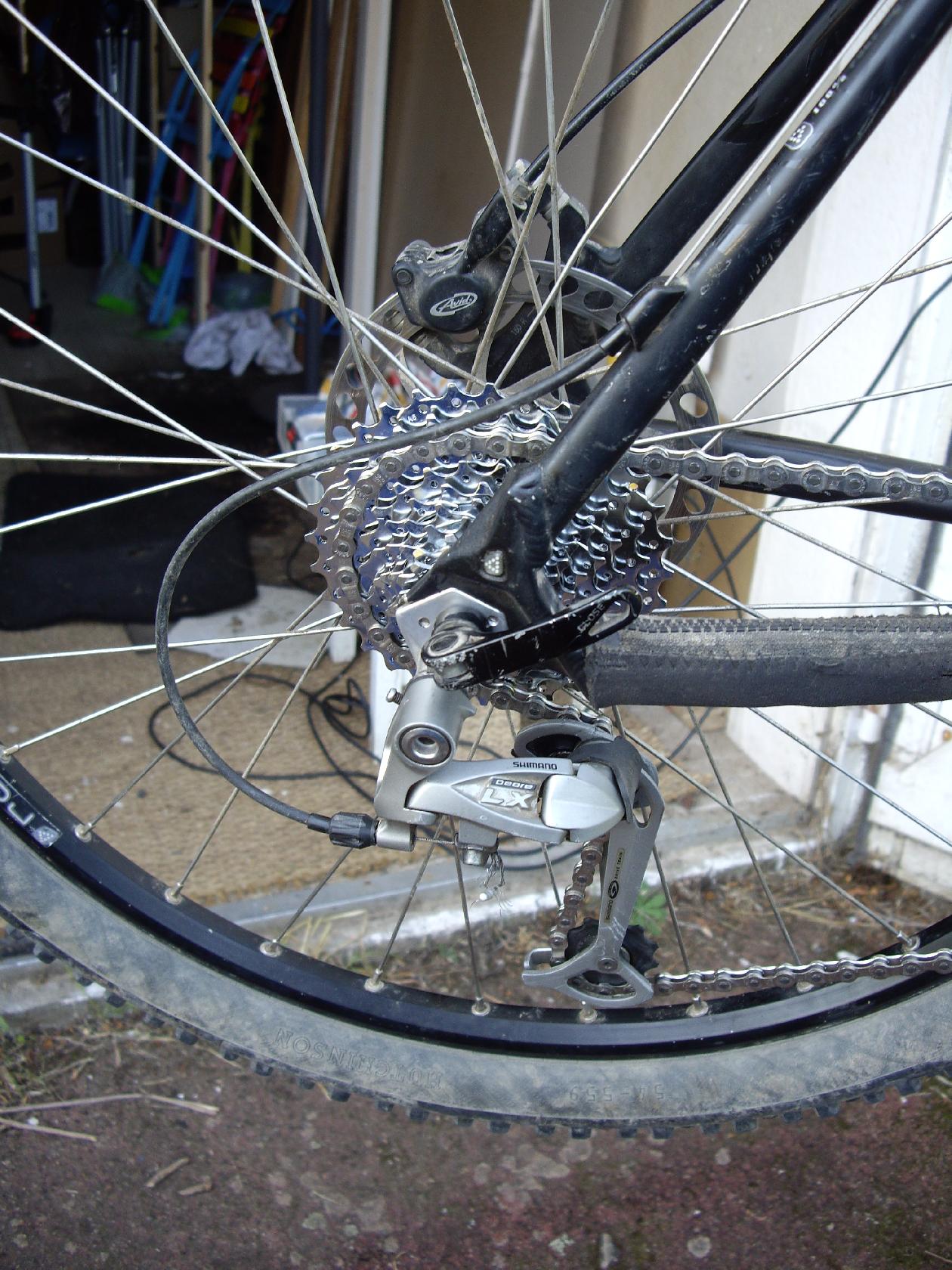 Pas tellement étonnant...et pas forcément génant pour un gars comme Hugo, mais Naf lui a besoin d'utiliser tout le (faible ?) potentiel de son vtt. On décide après moultes tergiversations de monter le xtr (pas perdant le Naf!) 8 vitesses de mon ancien biclou avec un cable neuf. Après quelques difficultés de reglages on arrive avec un assez bon compromis! Il est 19h et Naf peut aller préparer son sac pour la gamelle! Ouf!!! Mais son histoire n'est pas fini car après d'apres négocitions il a réussis à se faire rembourser son dérailleur qu'il n'avait pas payé! Si décath sombre, c'est grace au Nafnaf!!!!!