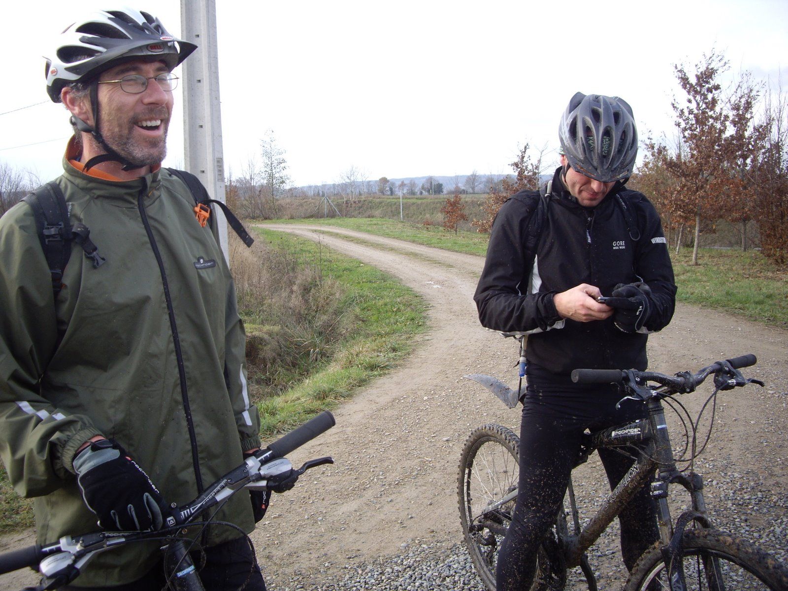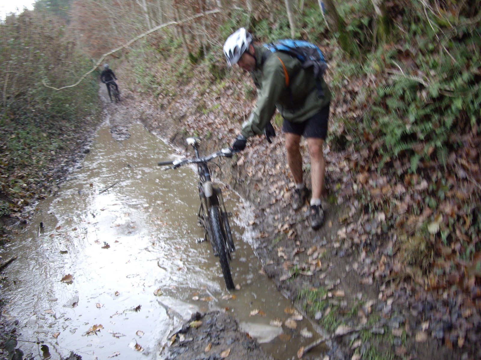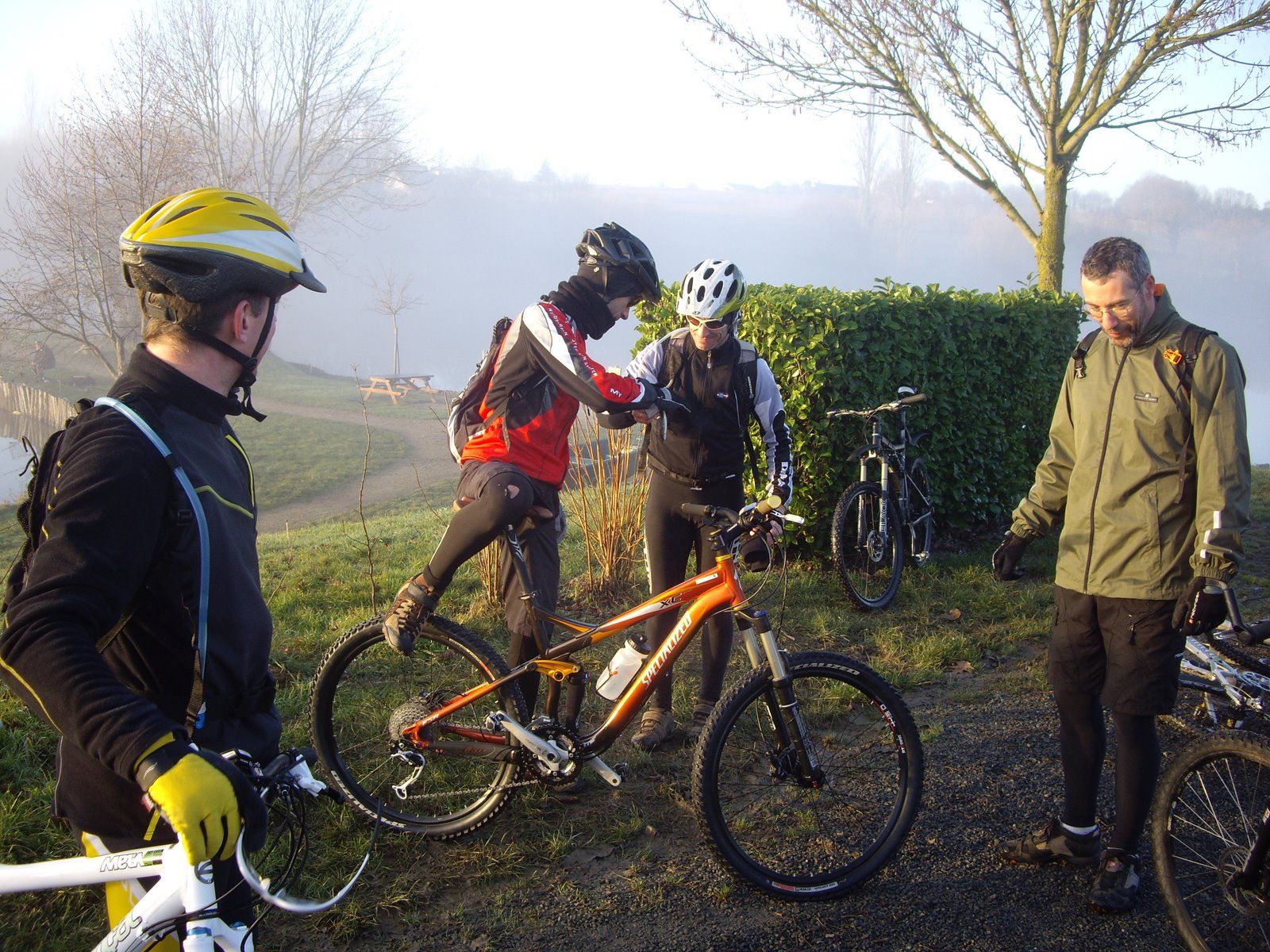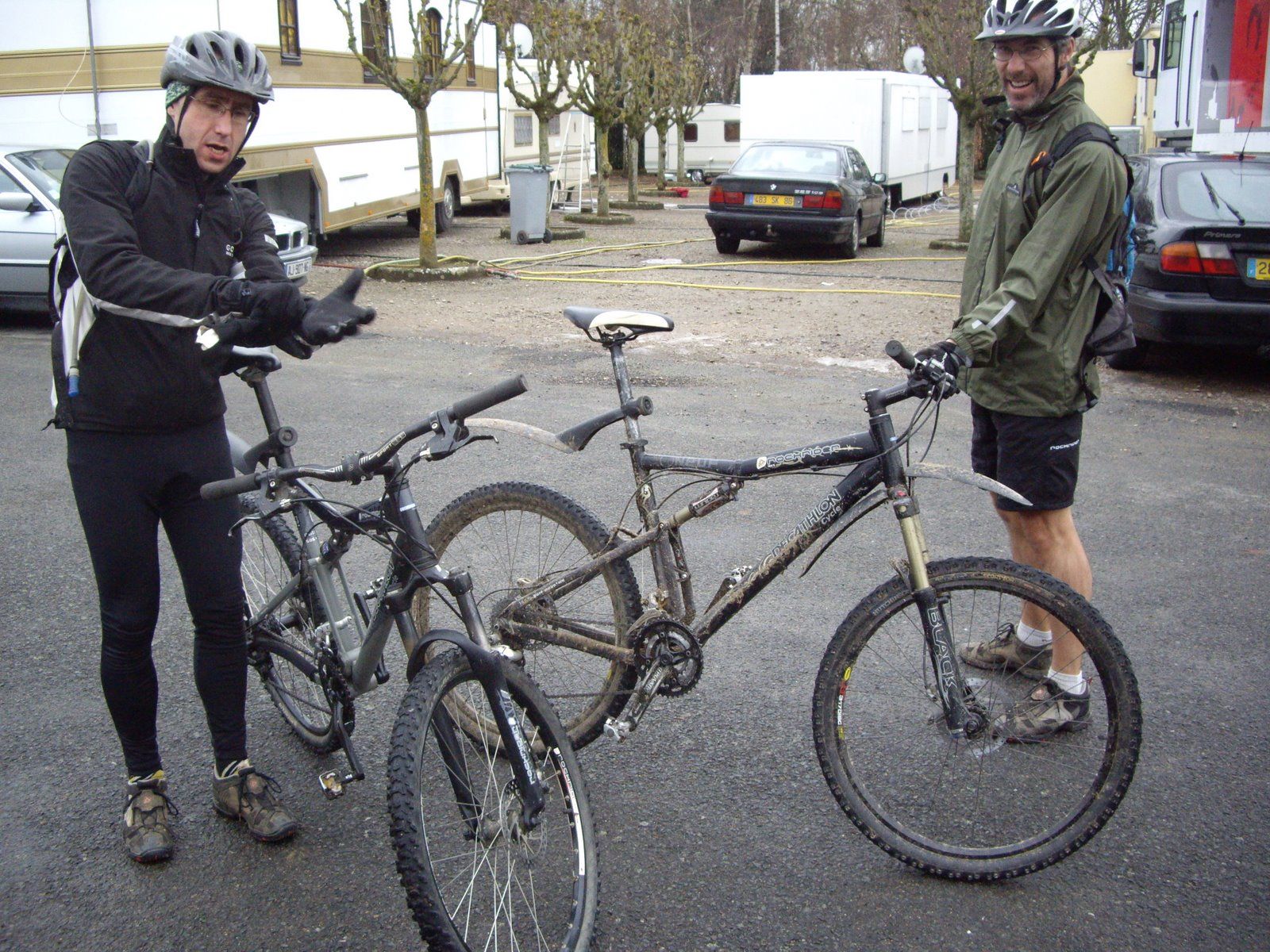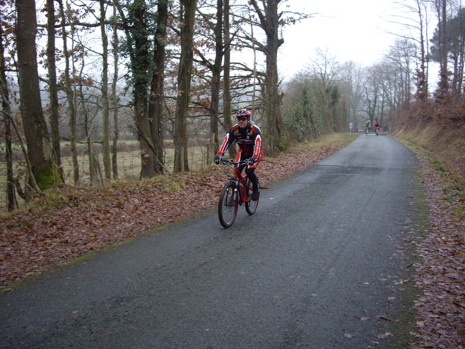 Pas très courageux, pas beaucoup de partants non plus, pas énormément de temps devant nous....voila qui augurait d'une sortie tranquille...surtout vu l'épisode de froid et de neige qui précéda ce we (en novembre ma bonne dame, y a plus de saison). Bon faut aussi relativiser, j'ai vu dans le journal que la sibérie était descendue à -47° et un peu plus loin à -51°...ça laisse pantois! Bon en même temps je ne crois pas qu'il fasse du vtt la bas!!!!