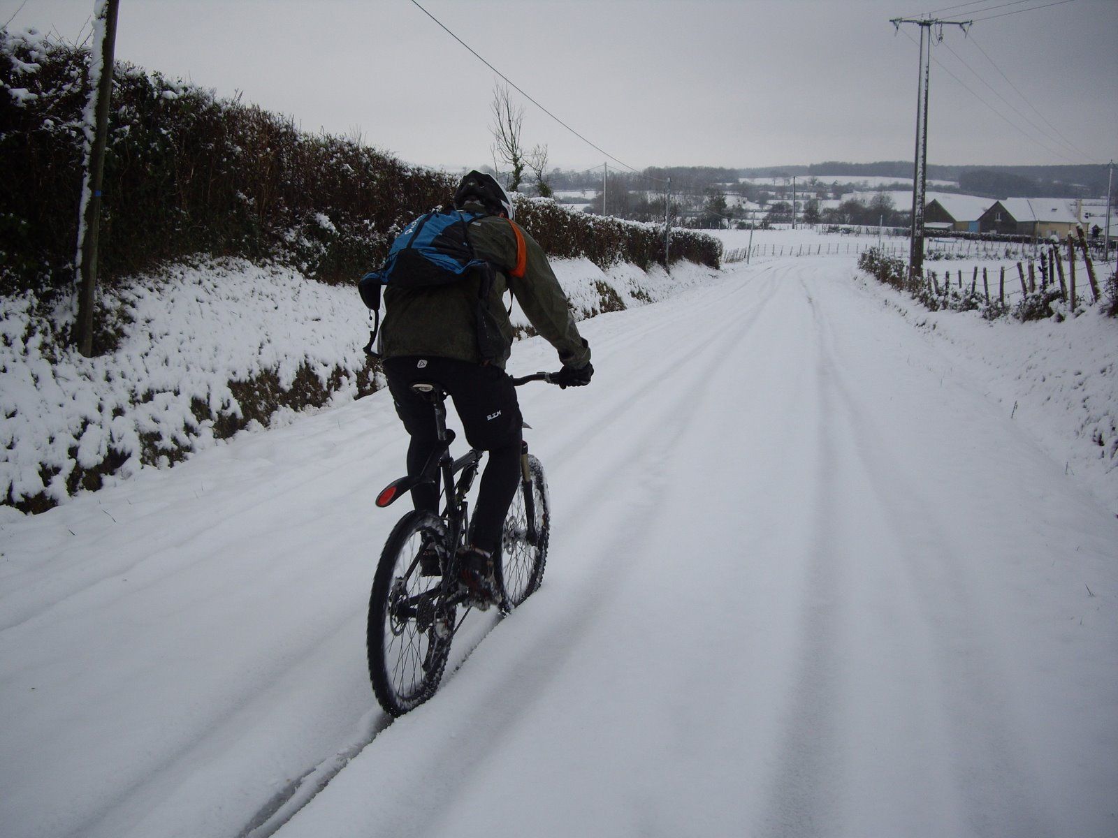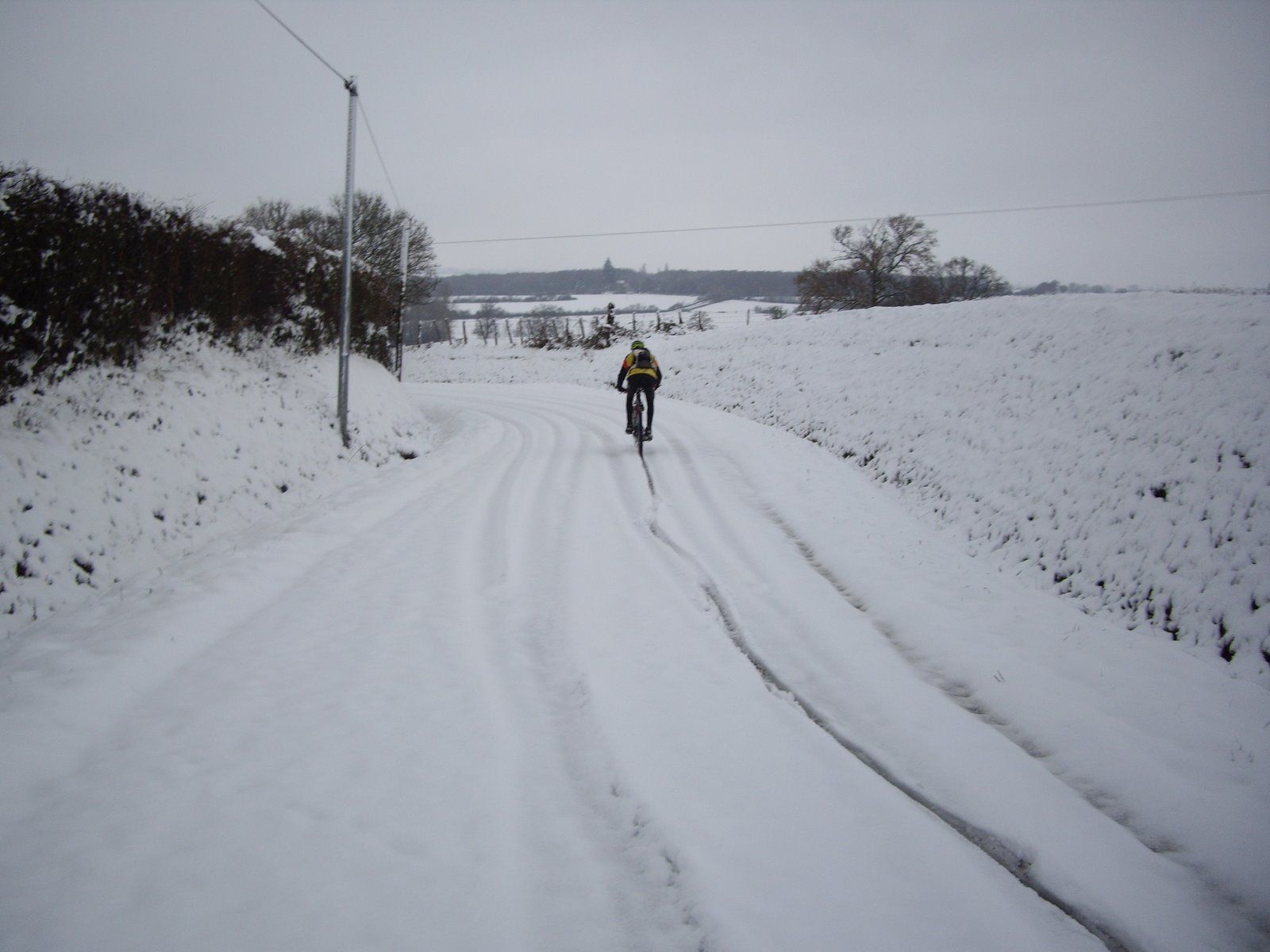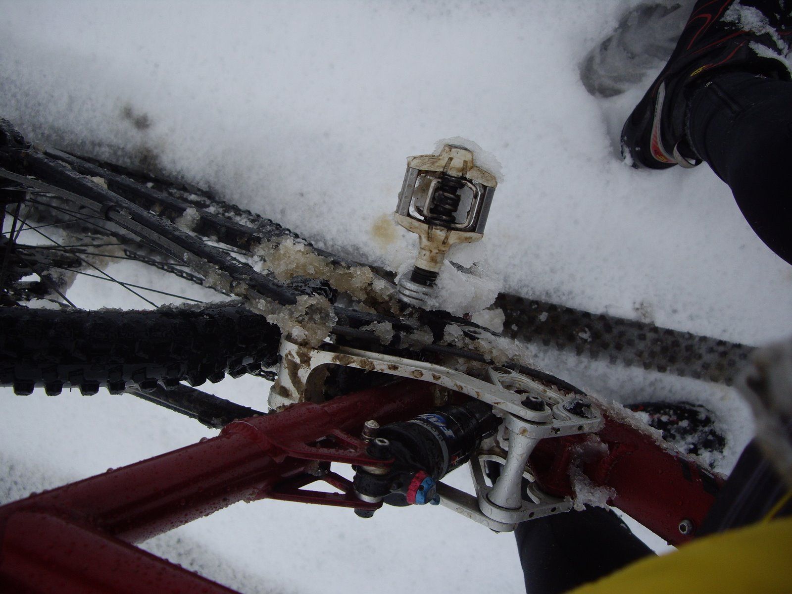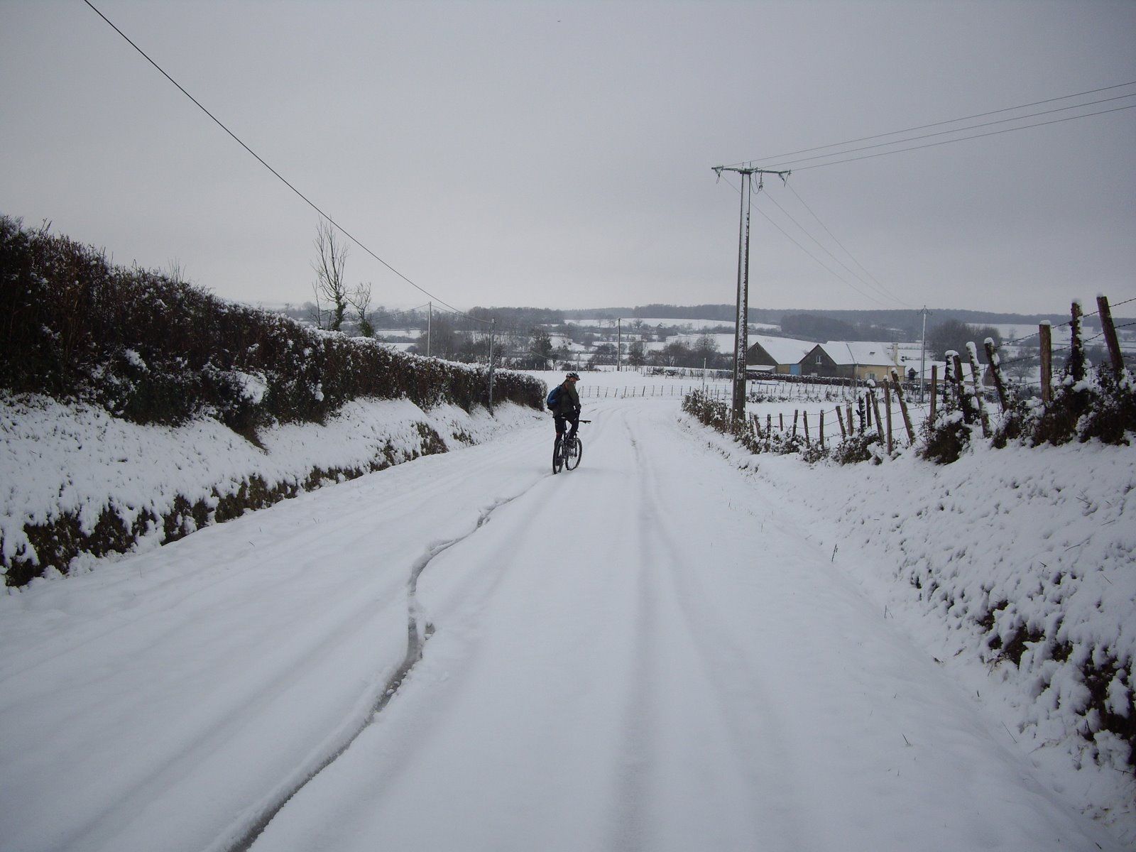, il fallait même pédaler dedans!!!!! Dur dur. La pluie continuait de nous mouiller, mais la neige qui s'accrochait à nos jambes aussi!