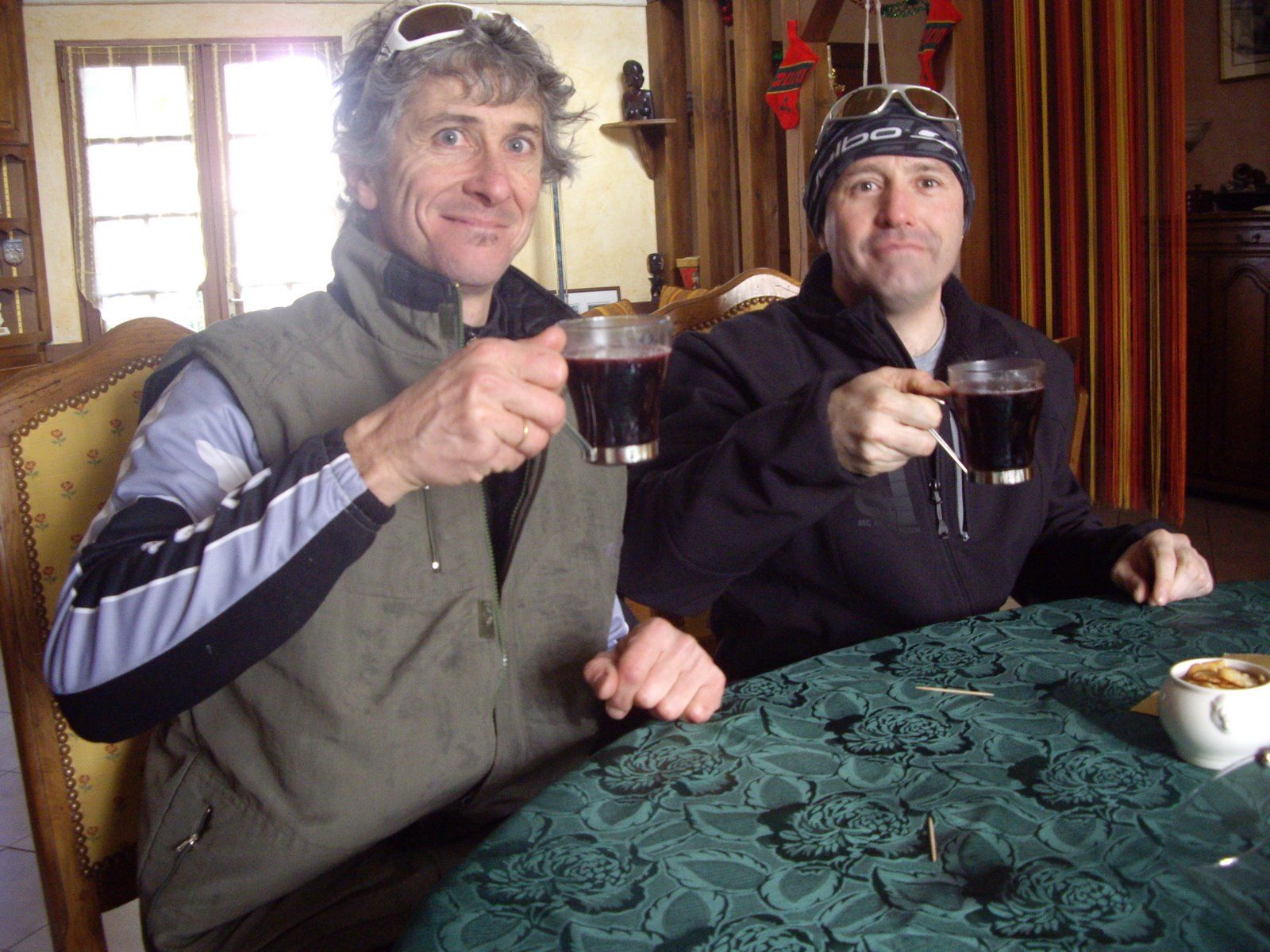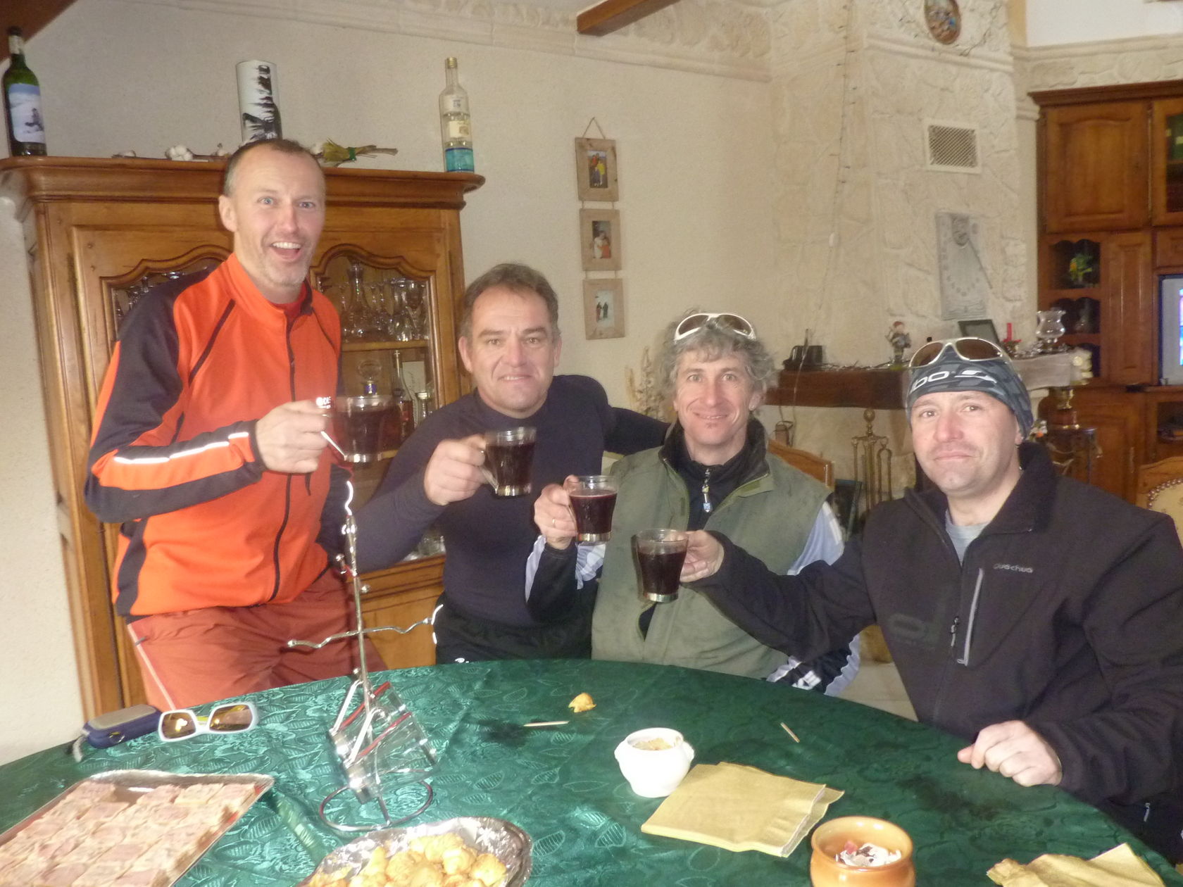 En effet cette première sortie de l'année s'est finie sous le signe du vin chaud de l'amitié...un moment très (trop , diraient les jeunes) sympa, ou Christine avait mis les petits plats dans les grands. Super...et voici les têtes de vainqueurs (Thieery ayant préféré ne pas assister à ce désastre.