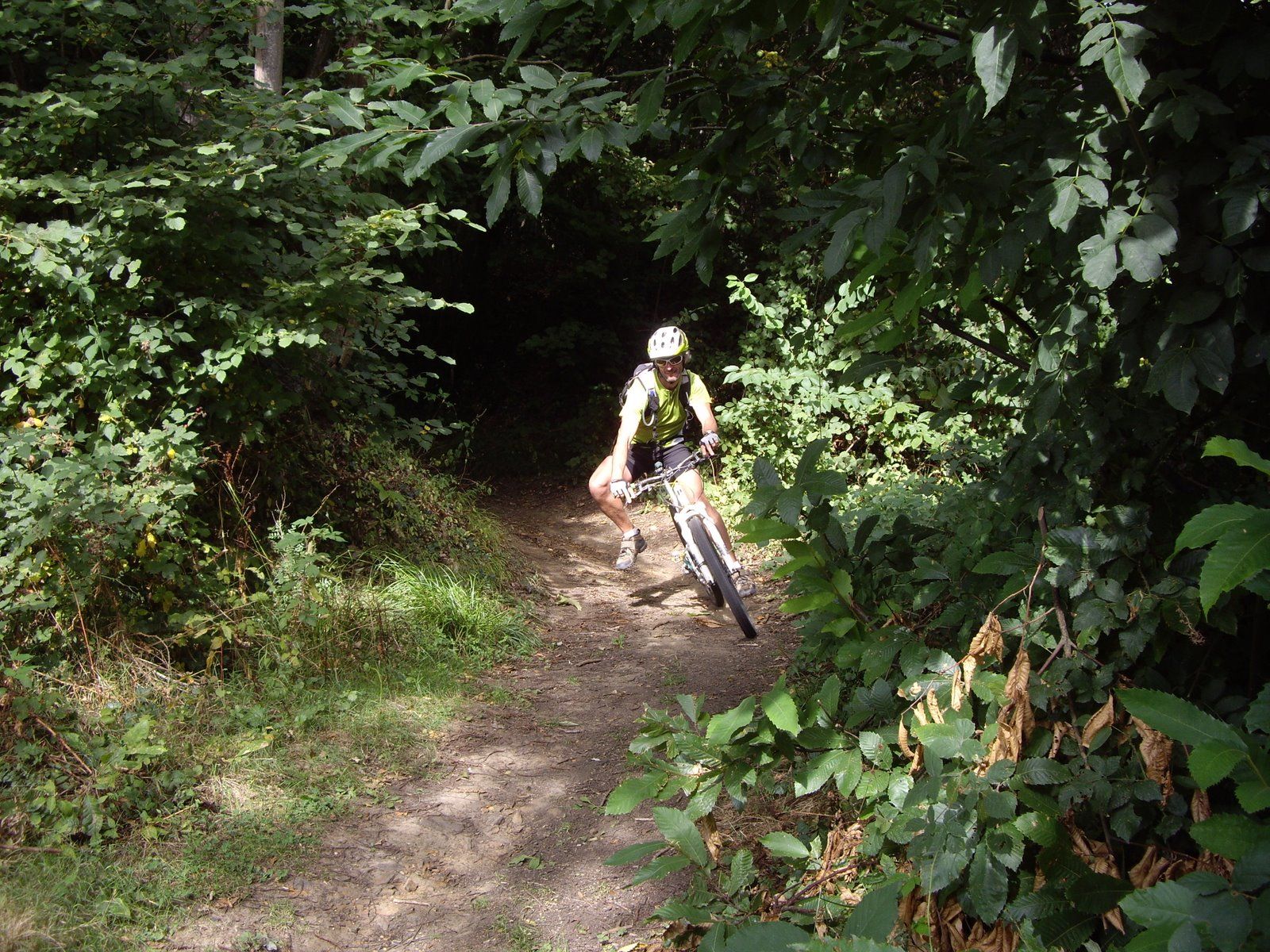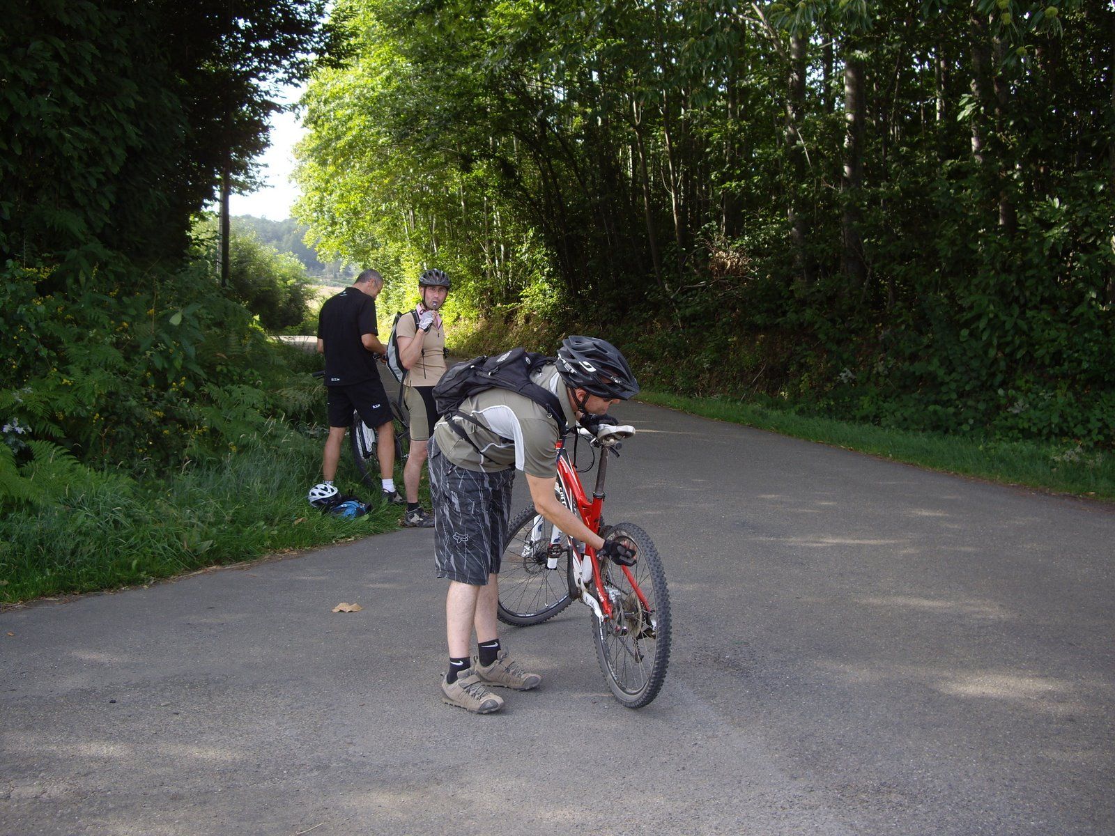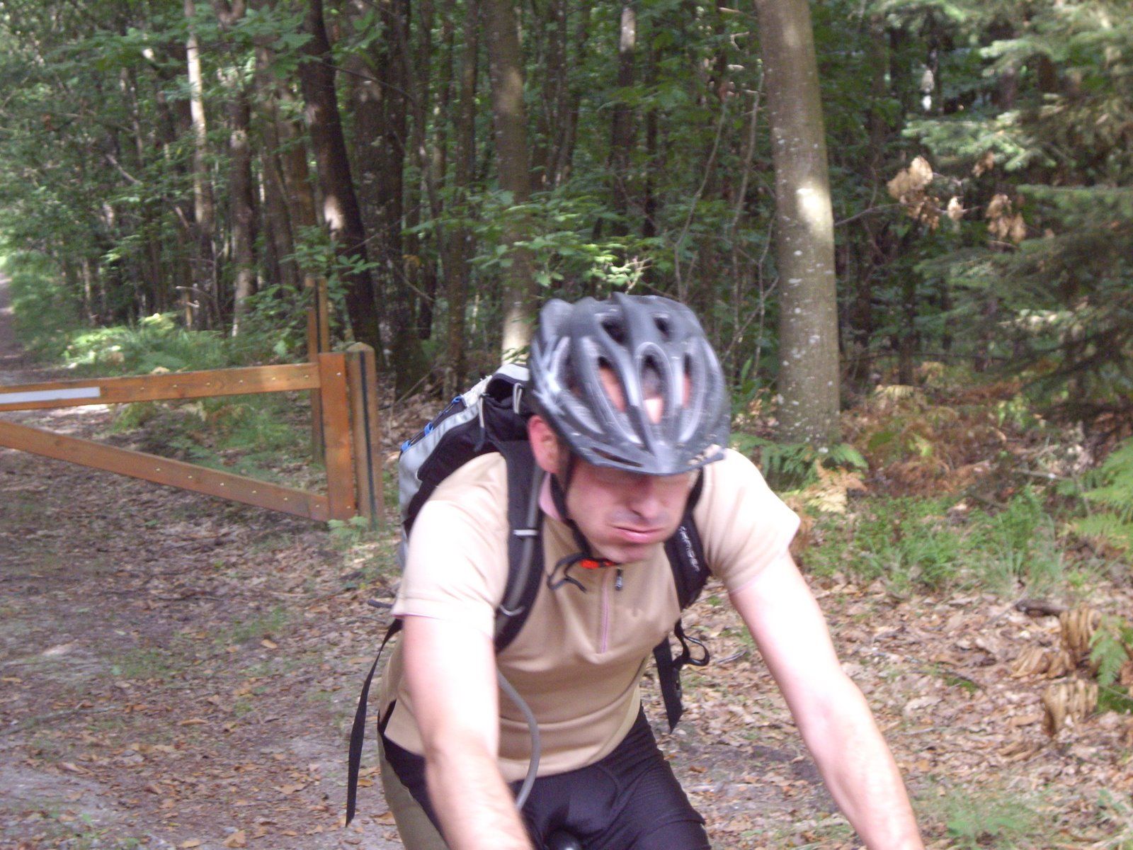 Pour se finir, on est allé se faire la variante 1 de la rouge. Au final 42 kms et un bon mal de jambe! Cependant la v1, elle en évite pas mal , des cotes de la rouge! Pendant ce temps Nut rentrait se soigner le genou avec un poireau? (ah non ça c'est l'histoire racontée) avec Bruno sur son porte bagage!
