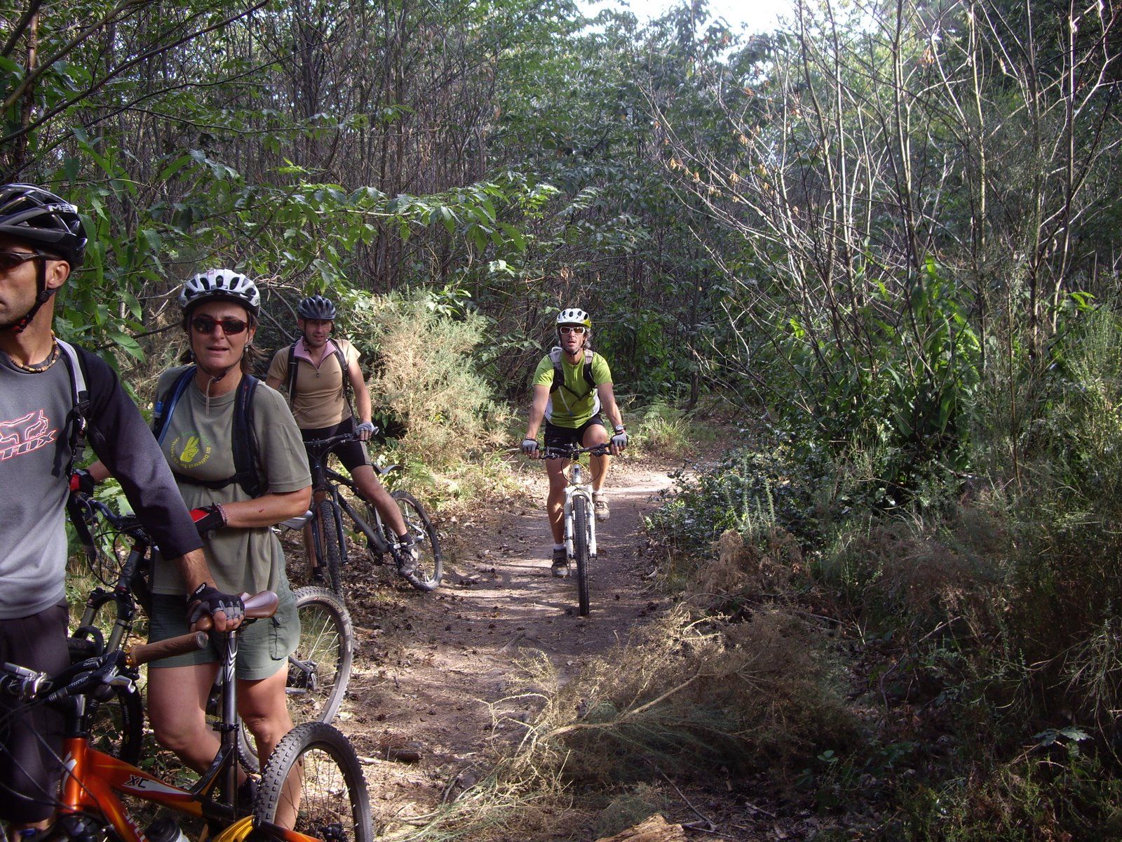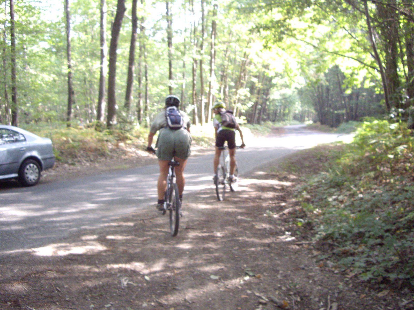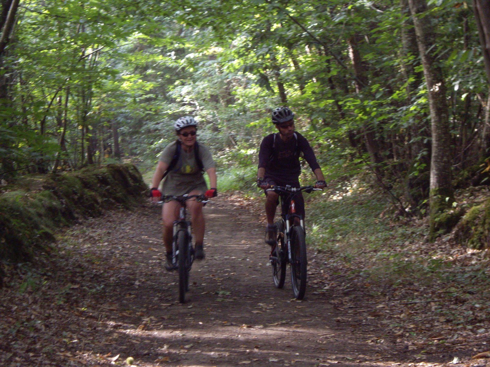 Pour se finir, on est allé se faire la variante 1 de la rouge. Au final 42 kms et un bon mal de jambe! Cependant la v1, elle en évite pas mal , des cotes de la rouge! Pendant ce temps Nut rentrait se soigner le genou avec un poireau? (ah non ça c'est l'histoire racontée) avec Bruno sur son porte bagage!