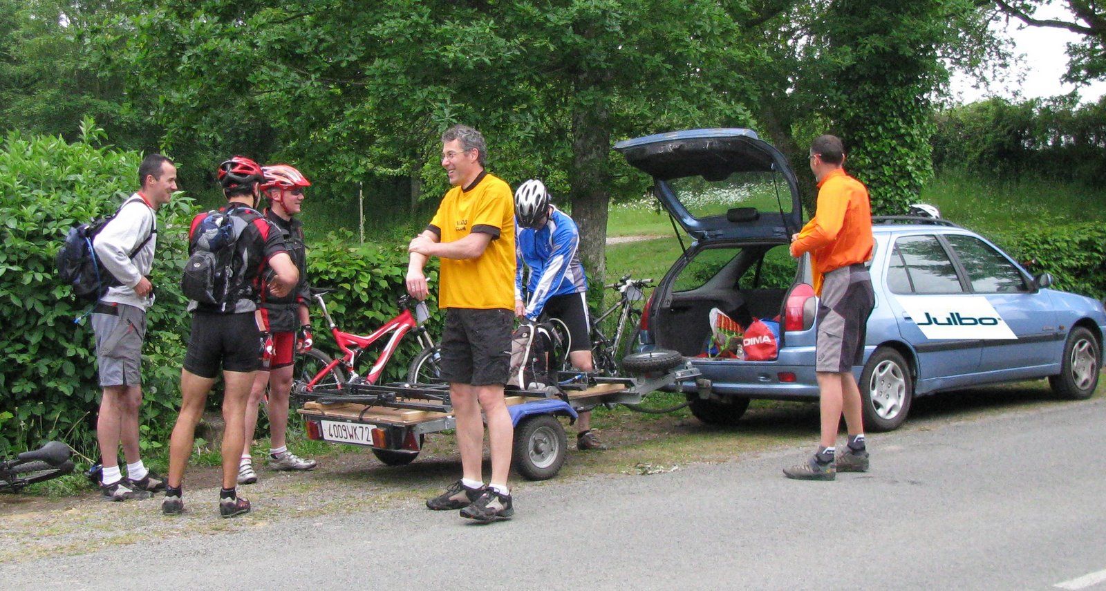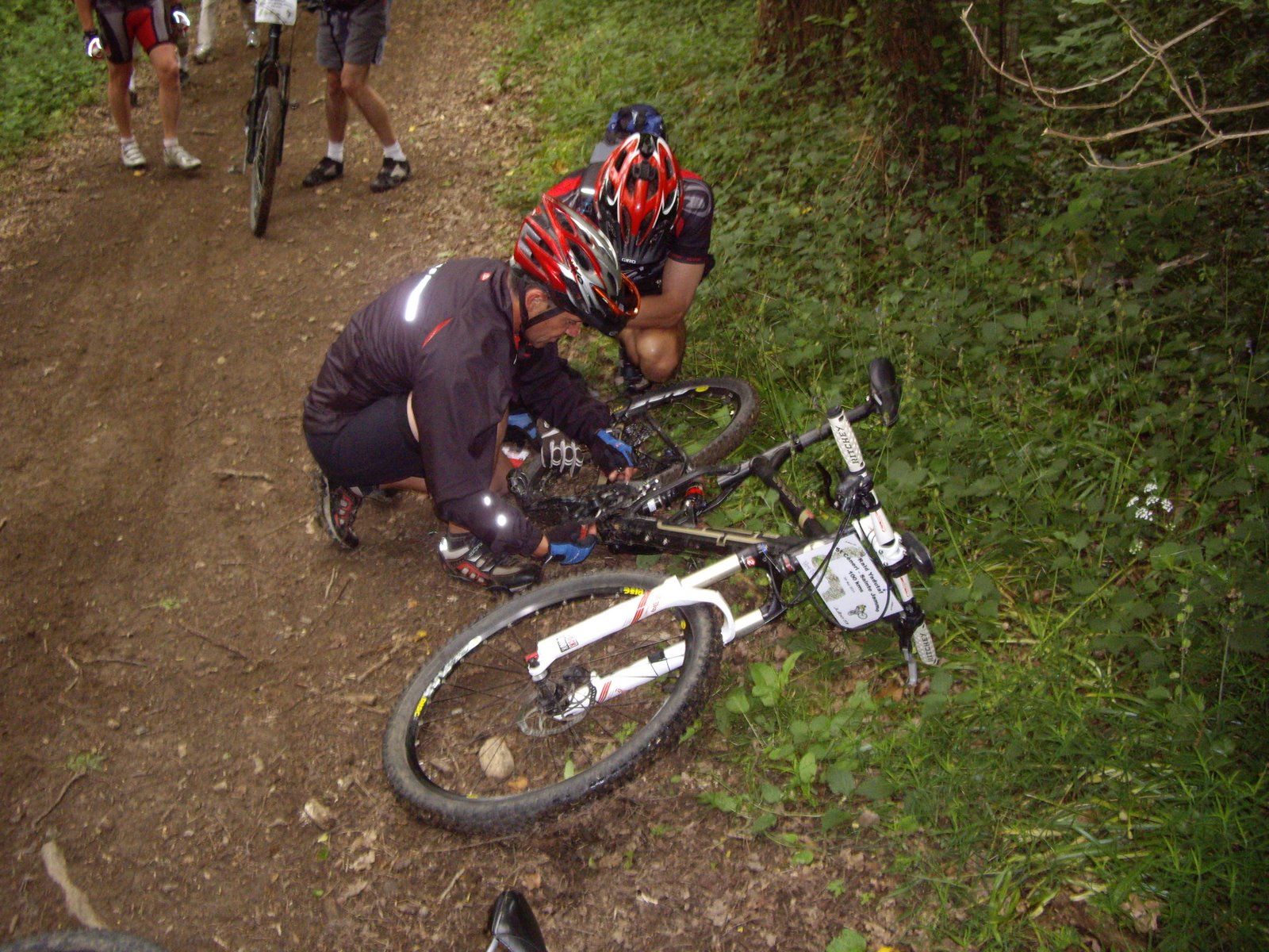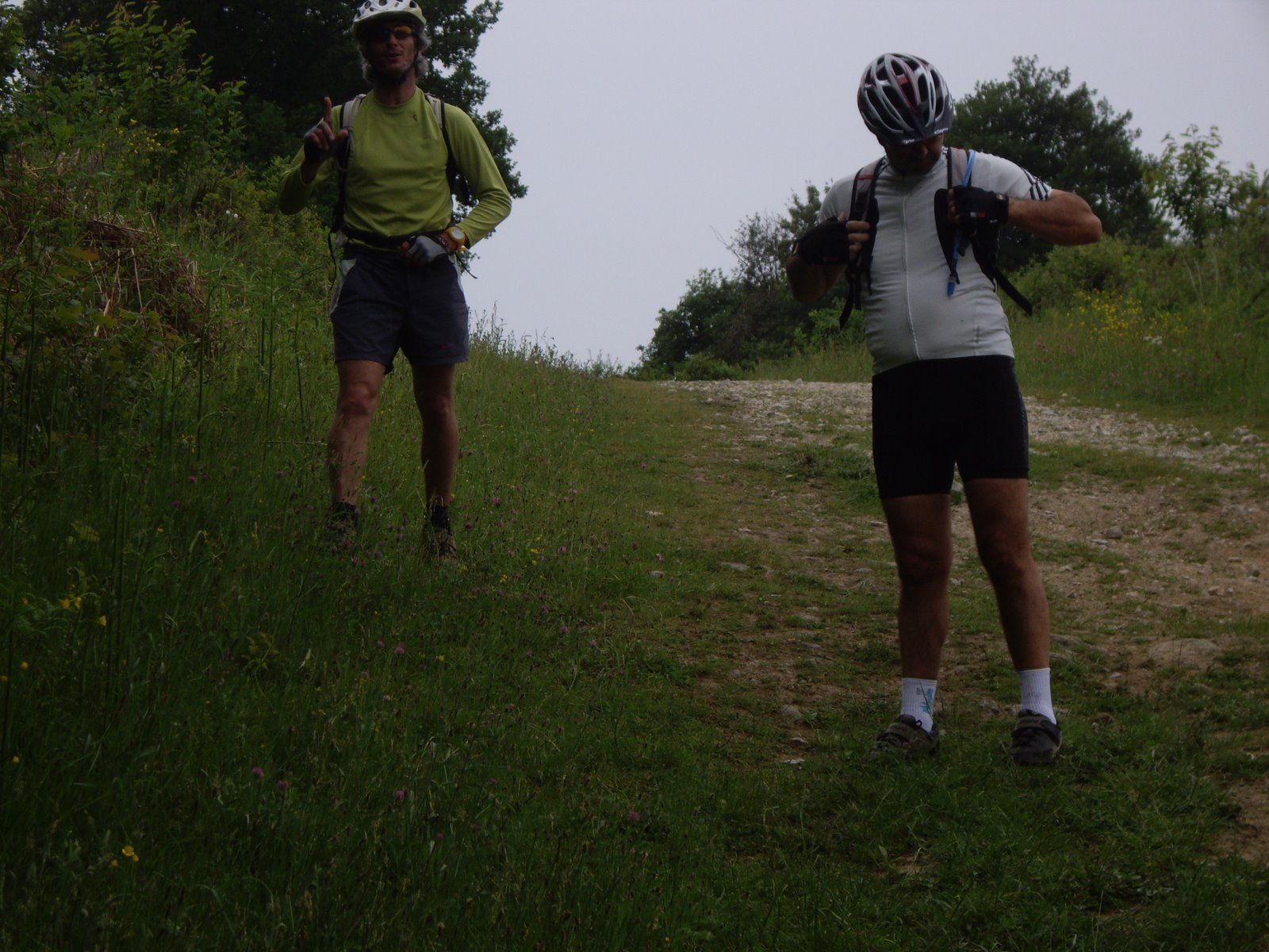 La preuve les autres sont tous à pied...même Mika le super descendeur et son style si particulier...qui lui vaut parfois des bains de boue!!!!!