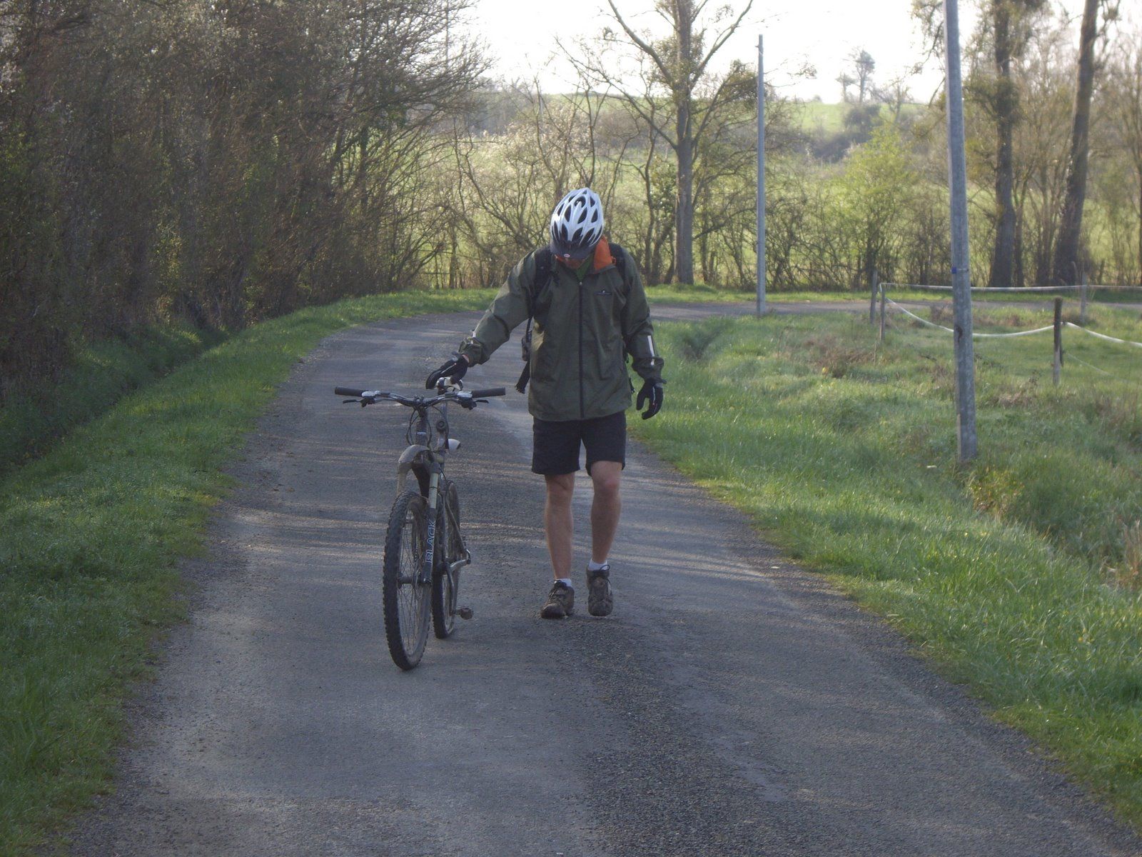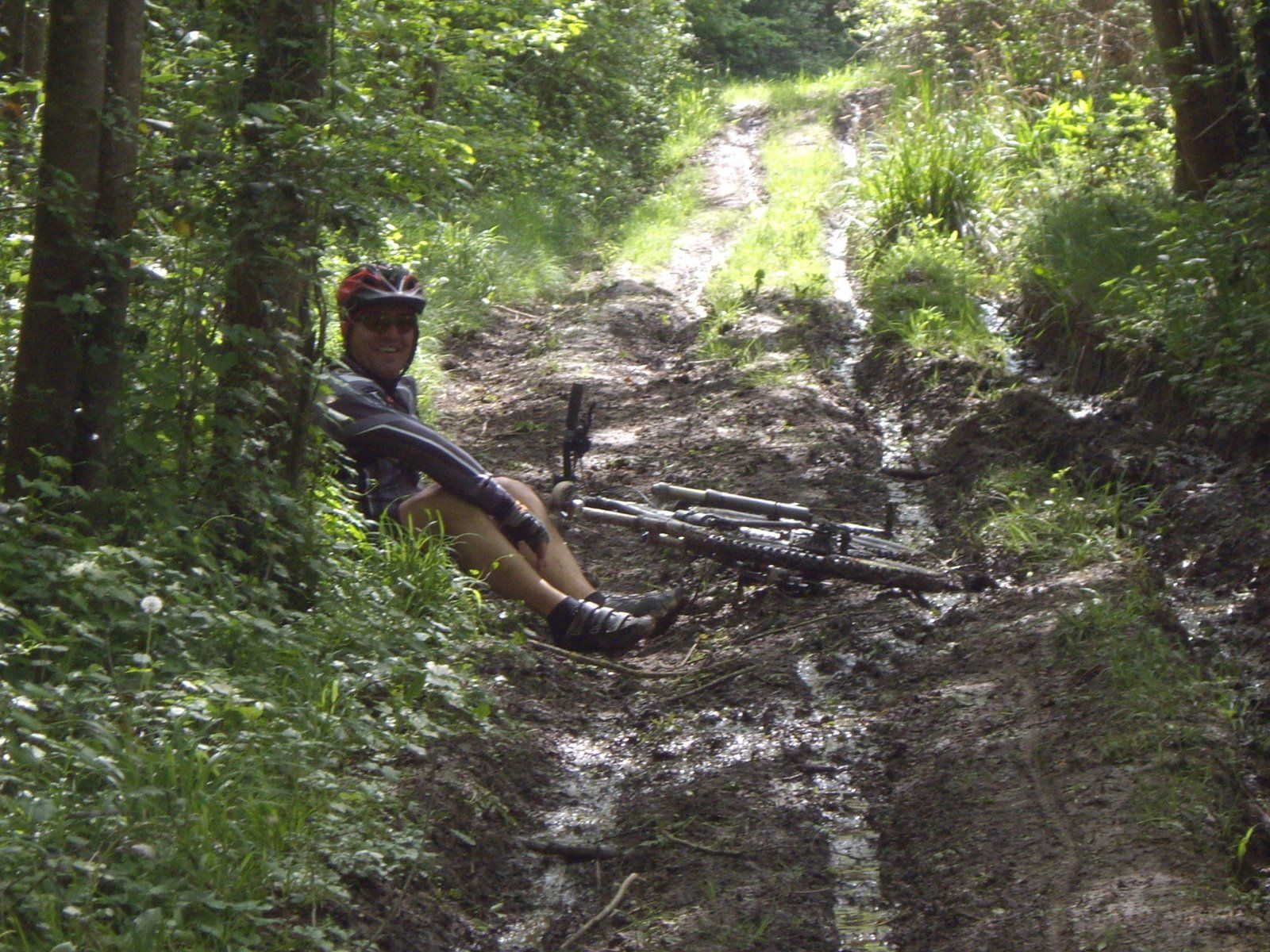 , Ok c'est la valve qui s'est déchirée mais quand même, il les collectionne en ce moment. Il serait peut-être temps de mettre enfin le nobby nic acheté l'an dernier! Après une réparation et...une perte de bidon, nous vouila reparti vers les mares d'eau!