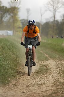 Le choix de cette photo est évident: observez ce nuage de poussière...et le sourire sur le visage d'un Bruno retrouvé que j'ai trouvez fort à son aise. Ca fait plaisir à voir....comme quoi l'entrainement ça paye. Et tout ça sans aucuns produit énergétique, sans gateau en poudre, sans dosette miracle...juste un poulet grillé!