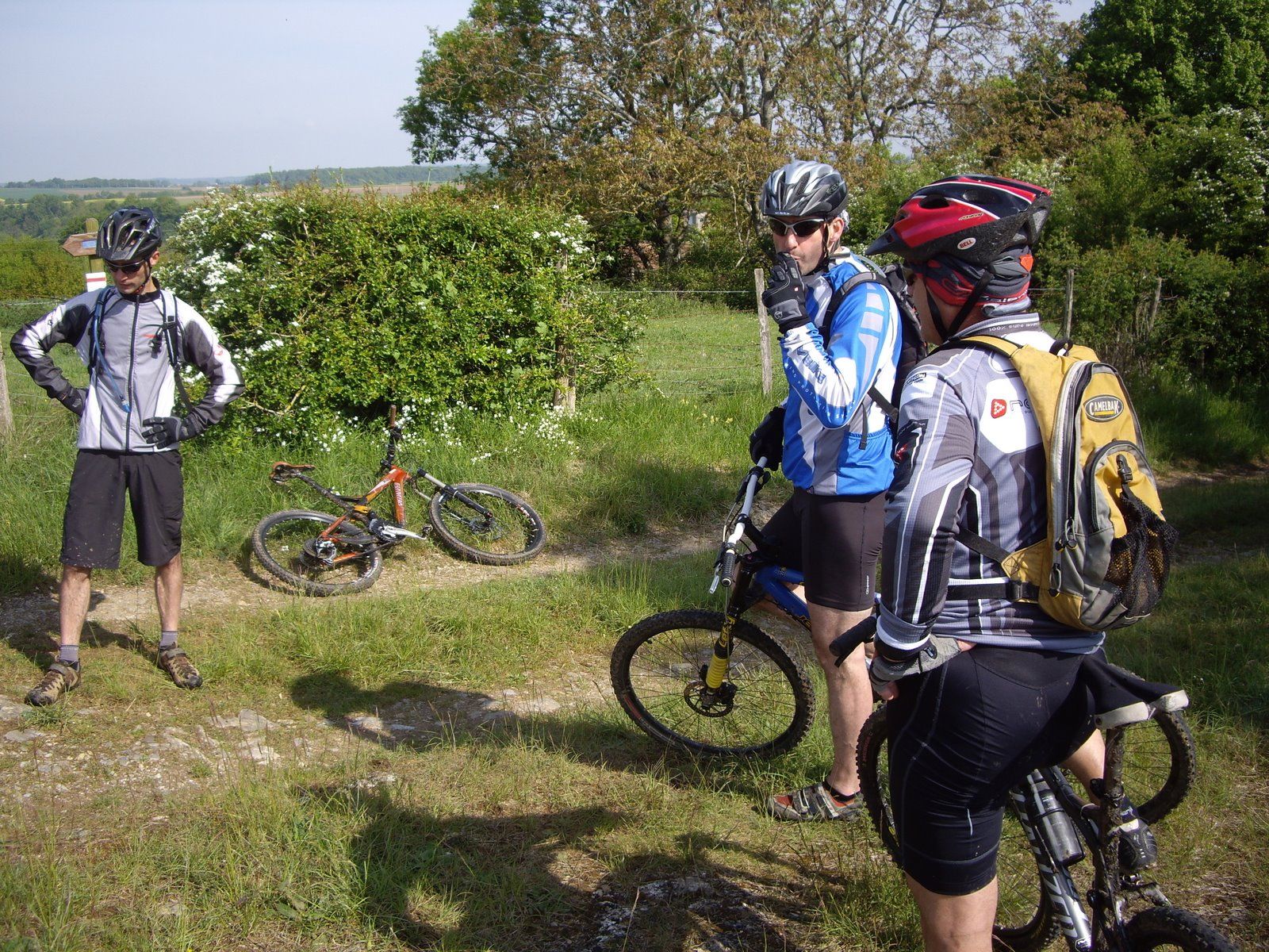 Sont présents en ce 14 mai (pont de l'ascension): Mika (qui est peut-être le seul qui ne devrait pas s'entrainer et qui en fait un max!), le Bull (qui nous prouve qu'il ne fait pas que de la route et que ses entrainement sur ce dit sol, porte ses fruits), le Bruno (avec ses compotes énergétiques) et Le Naf (sur une seule jambe (comme son vtt qui n'a qu'un bout de fourche, je vous le rappelle).