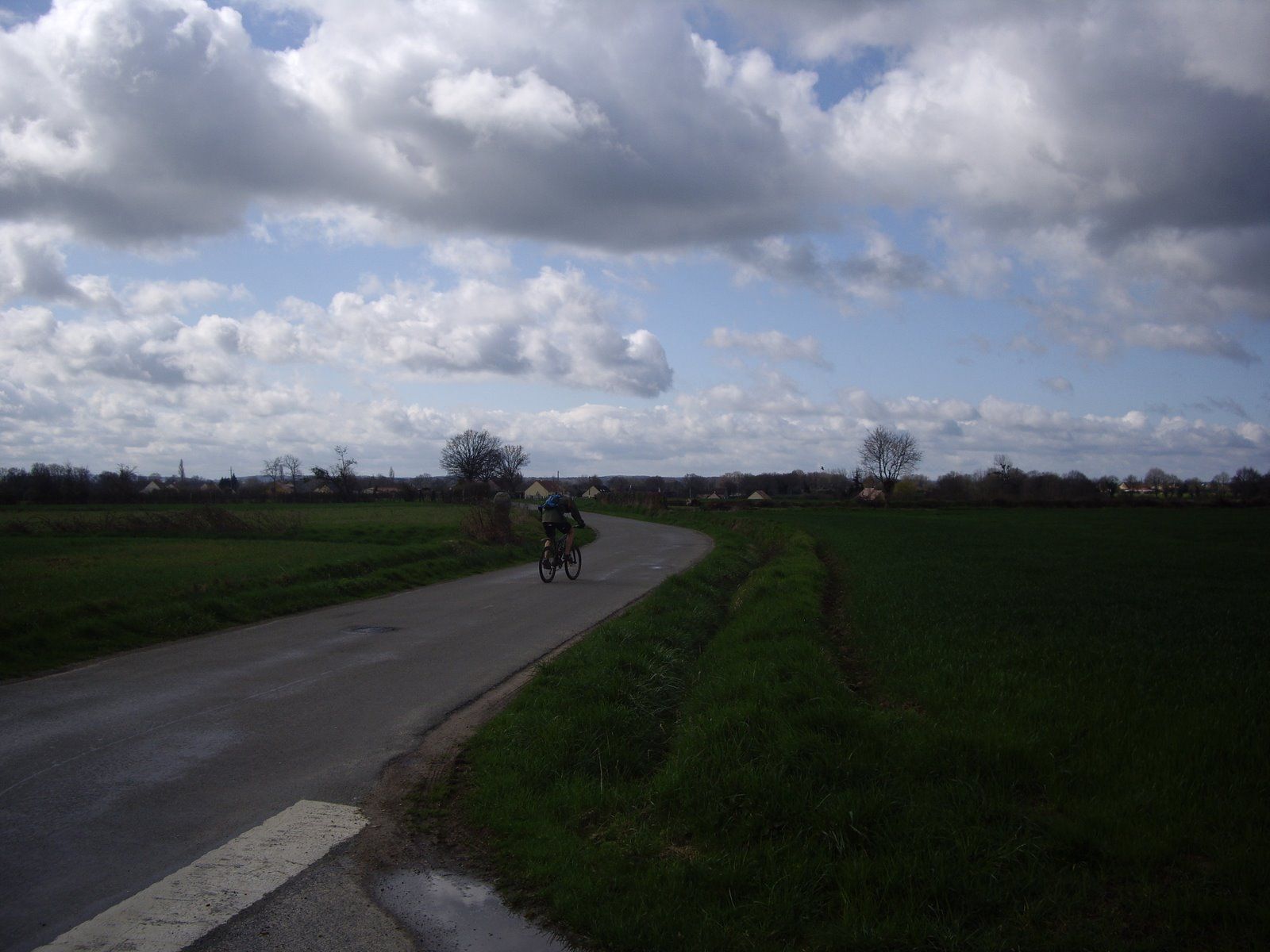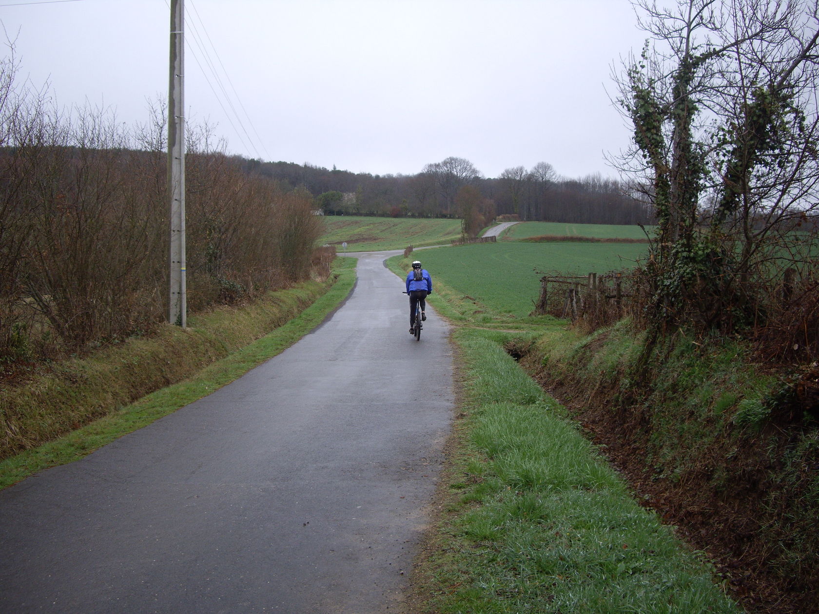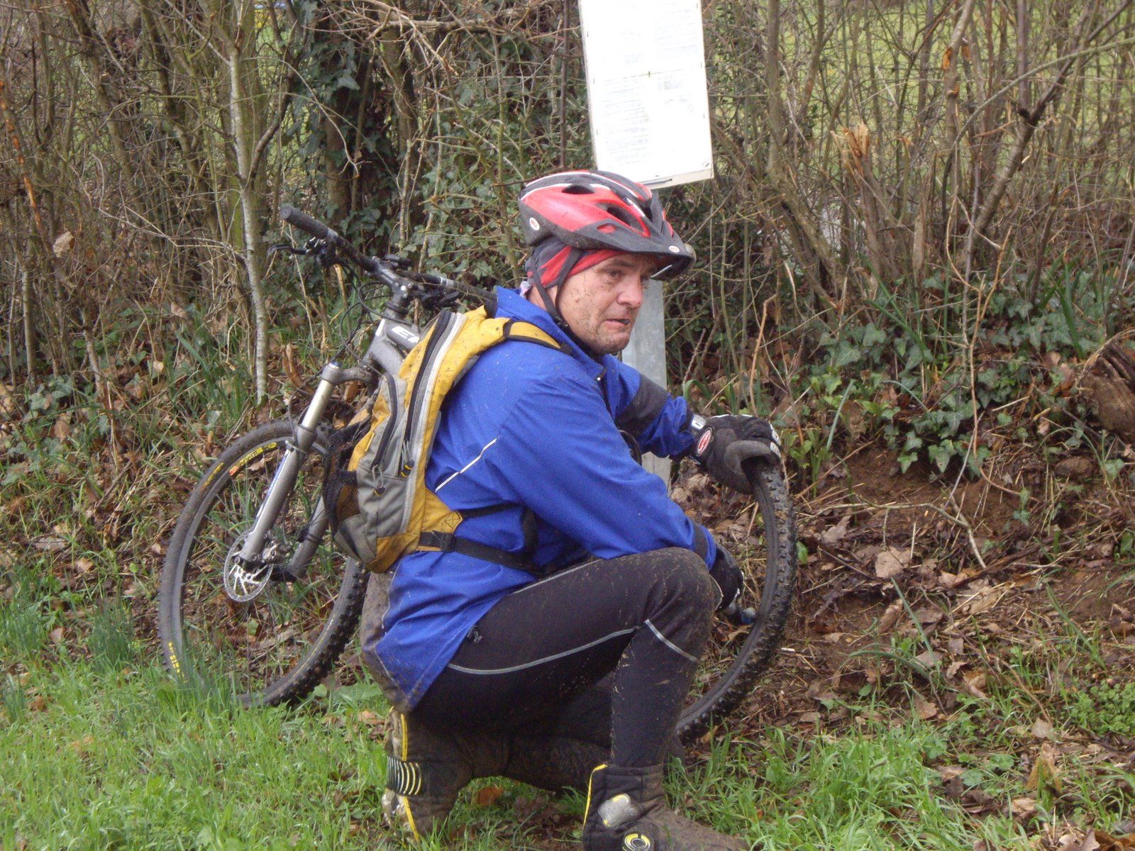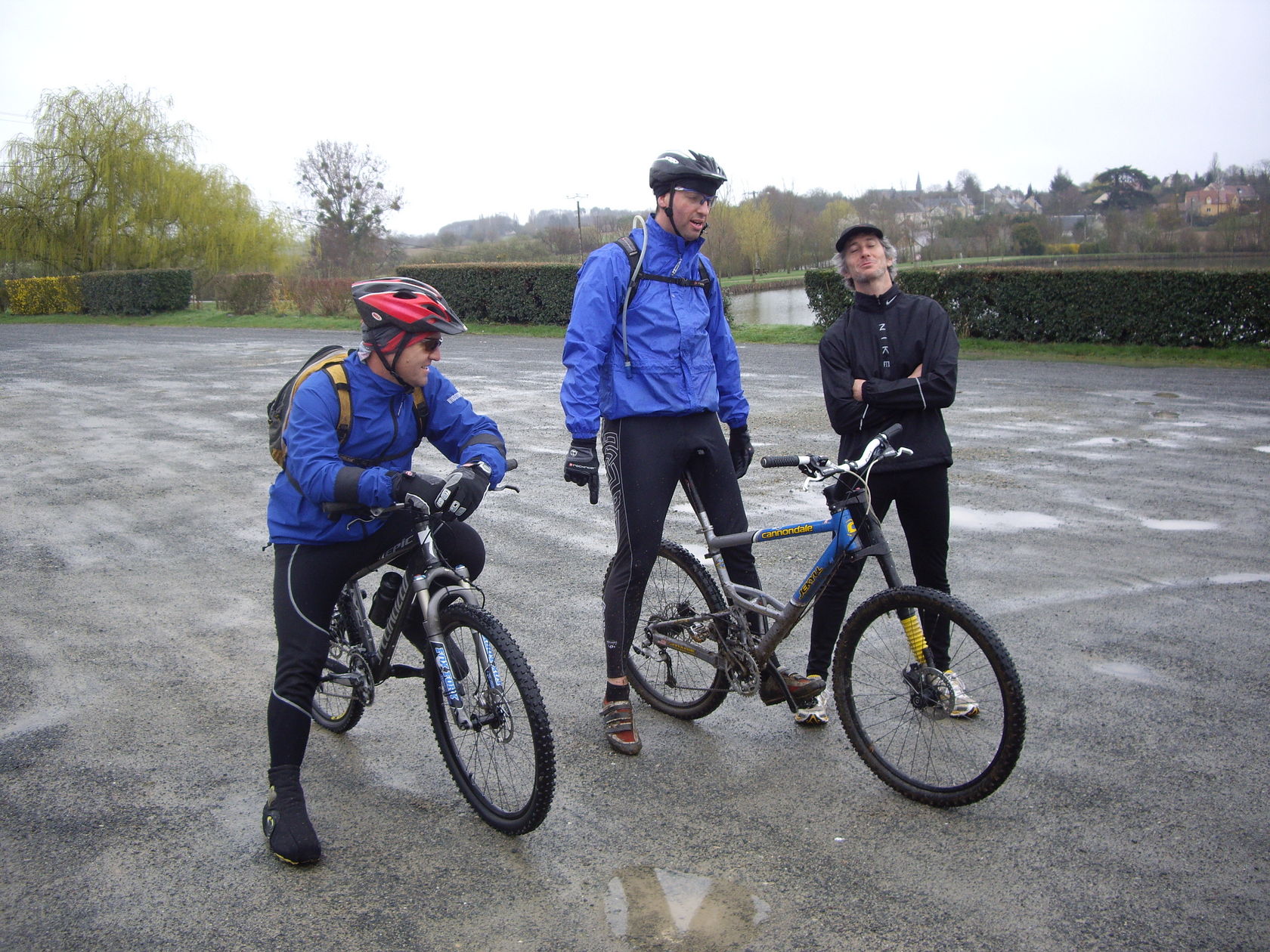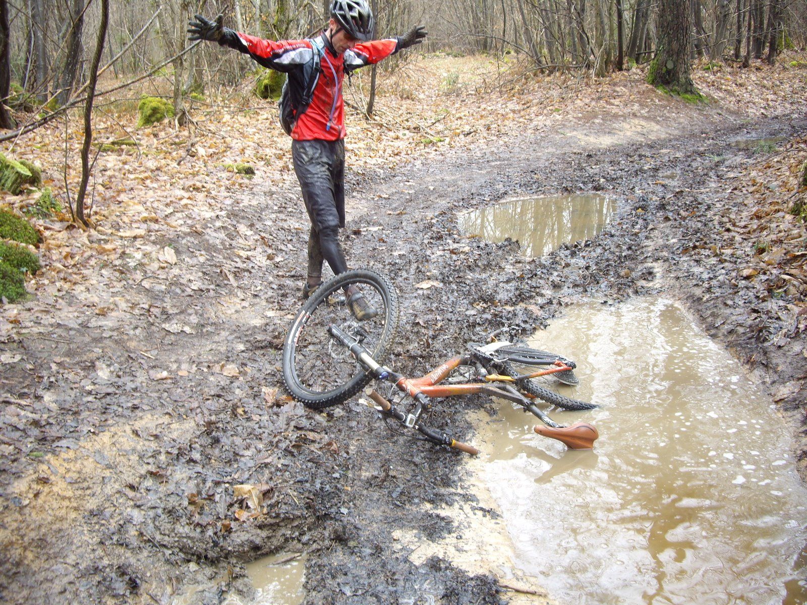 En effet alors que nous roulions tambour battant sur la "descente" en 3 tronçons de Mézierre, Mika attaquait. Moi j'essayayis de suivre avec des douleurs qui me rappelaient les cotes gravies auparavant, jusqu'à ce que ce même Mika me gratifie d'un soleil (trop rapide pour être pris en photo...va vraiment falloir se mettre à la caméra embarquée) avec attérissage façon plat....en plein de centre de la mare (d'ou le titre). Pendant un instant j'ai cru qu'il se noyait, car même le casque a disparu de ma vue!