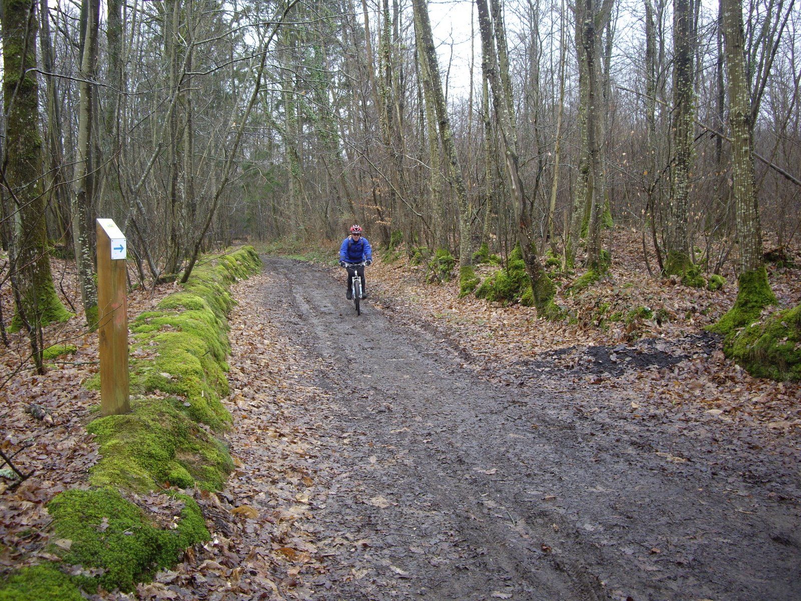 En effet, la première partie (jusqu'à la traversée de la route) est détrempée bien qu'il n'est pas plus depuis 15 jours!) et quelques arbres sont tombés (merci Cynthia: prénom à la con!): résultats je me suis retrouvé à pied, plus que de raison!