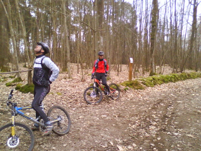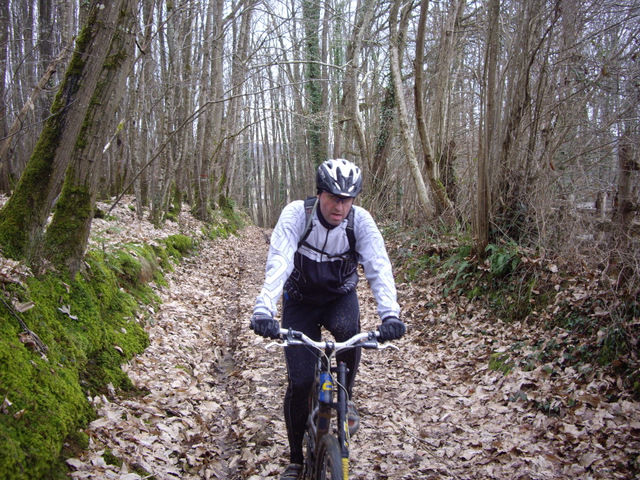Cependant la balade fut sympa , et le sol avait bien regelé, rendant les cotes moins dures que 15 jours auparavant! Moins dur, faut voir....surtout quand tu essayes de coller au basque du gars qui manque de rythme!!!