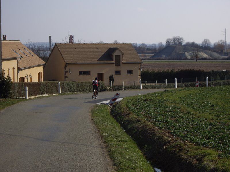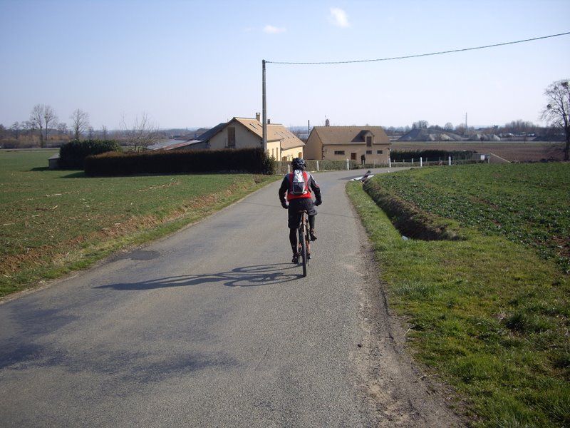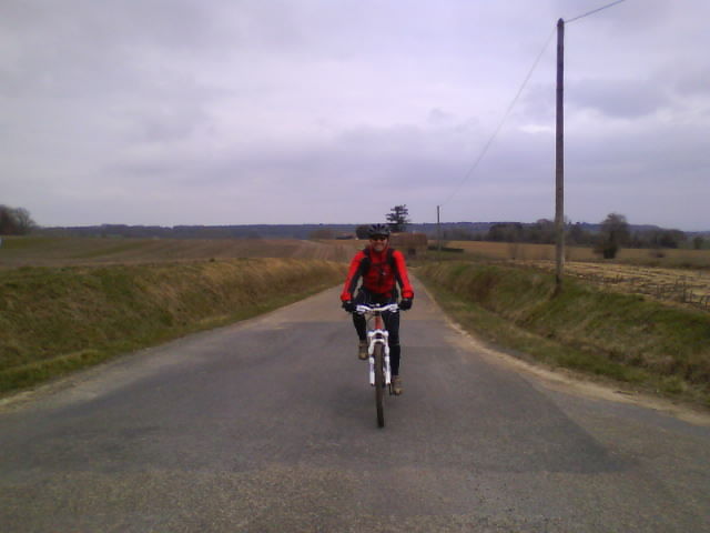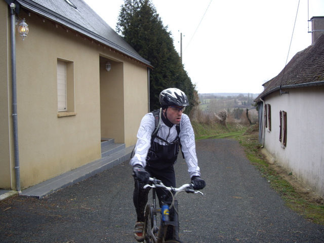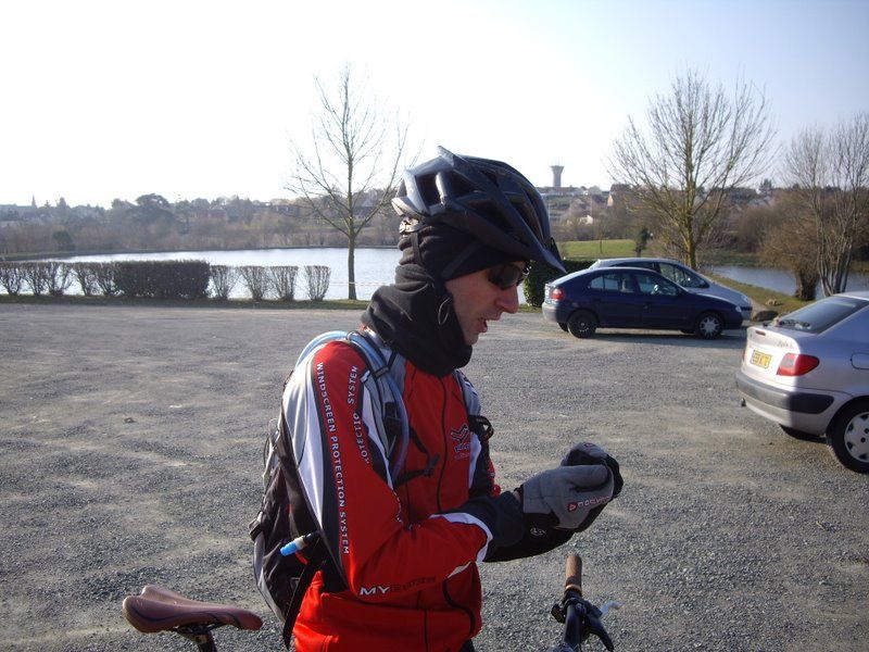 Et ce matin il ne faisait vraiment pas chaud aux étangs de la Bazoge (ailleurs aussi!!!), la faute à un sale vent de nord-est qui nous a souvent obligé à pédaler fort dans les descentes...pour à peine atteindre les 19km/h!!!!!
