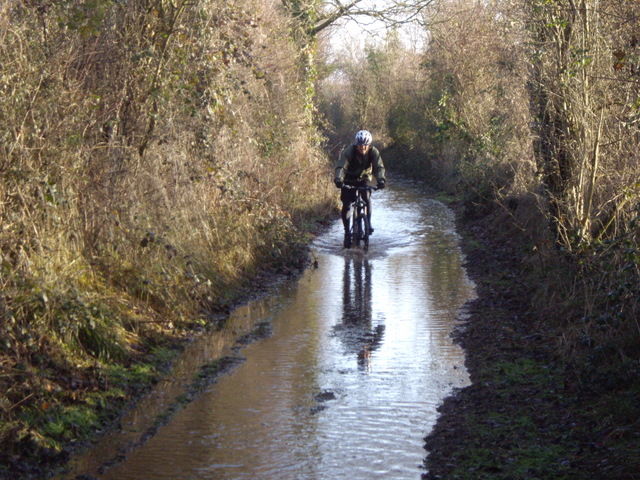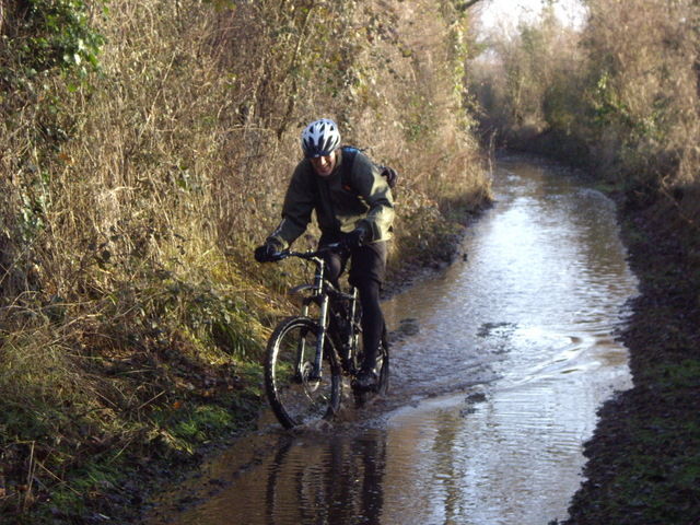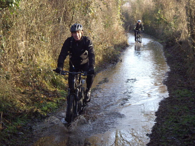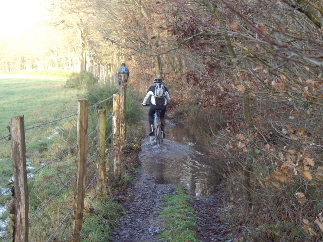 (La on souriait encore!)Peut-être est-ce du au fait qu'il croit toujours que son vtt est auto-nettoyant? Mais en fait il m'avait pris au debut de la mare...