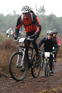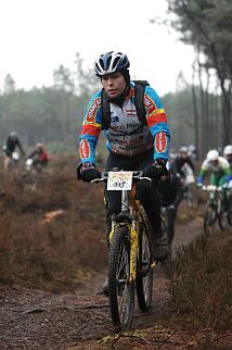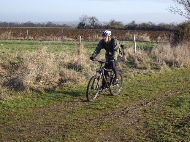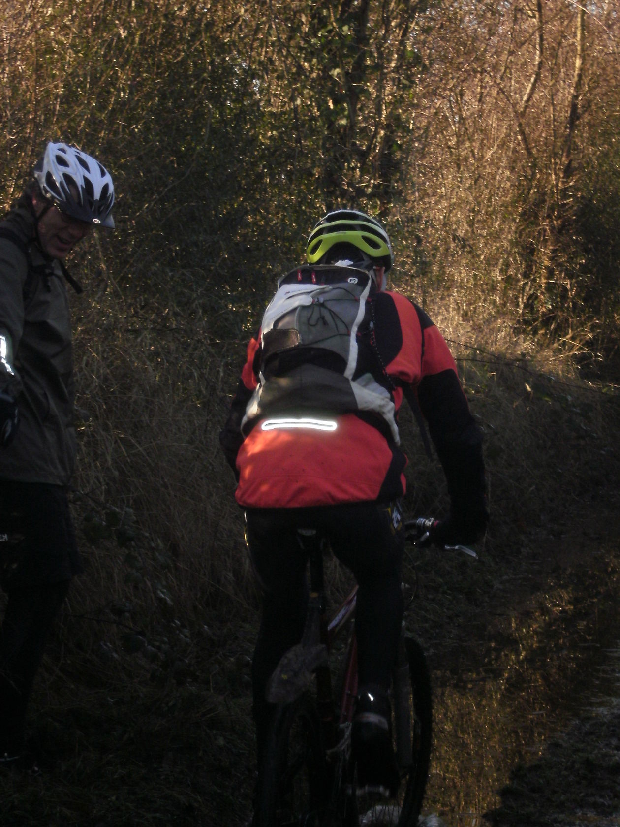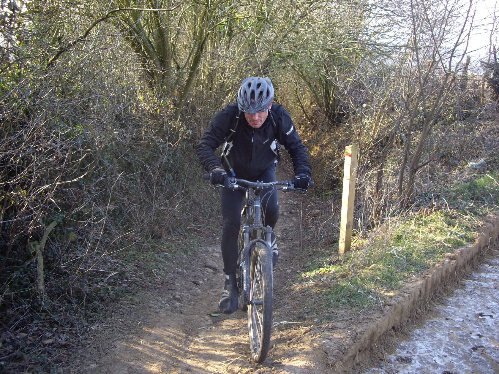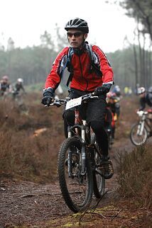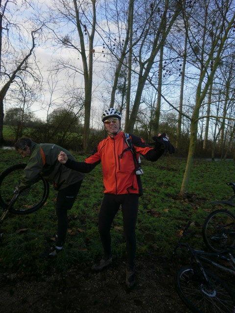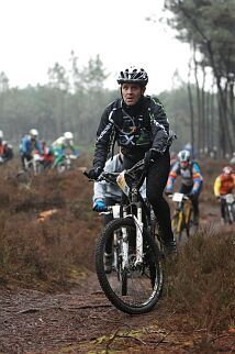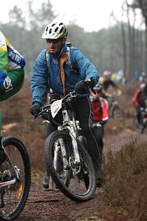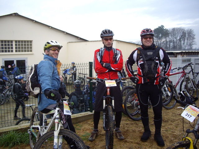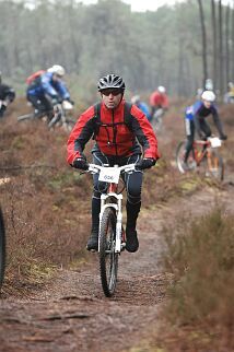 Fallait bien que j'y passe aussi! Même si j'étais la incognito (sans le maillot orange attendu par tous les reporters de vtt mag!). Obligé de se mettre en danseuse pour un petit monticule tout pourri...car j'étais obligé de garder le petit pignon pour suivre sur le plat. Cependant cette photo vaut son pesant d'or pour 2 raisons: