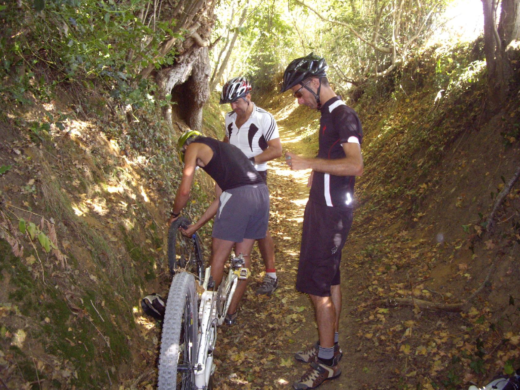 Sur 7 coureurs le samedi et 6 le dimanche, on ne dénote pas une seule crevaison (alors que certains étaient arrettés au bout de 300m!) pas un ennui méca! Ok Vomito n'était pas parmis nous (pour les crevaisons) et Hugo non plus (pour l'entretien de son vtt plus que limite!!!!). On retrouve Soiz et Sylvain (ce qui ne nous rassure pas quant au rythme imprimé!)