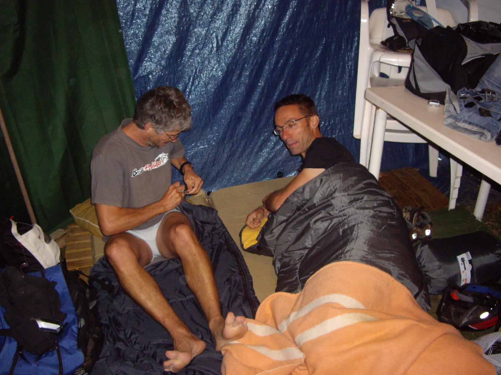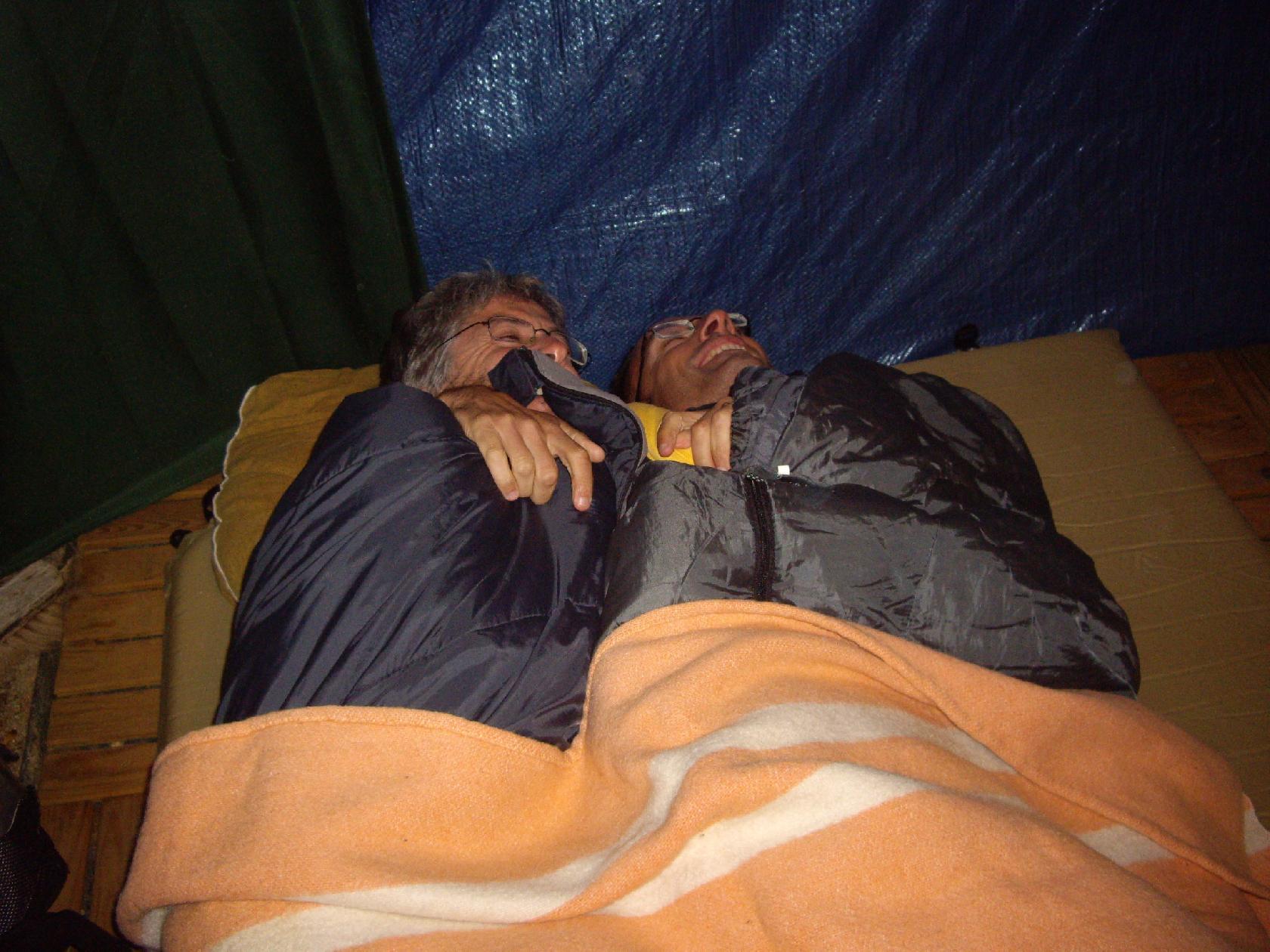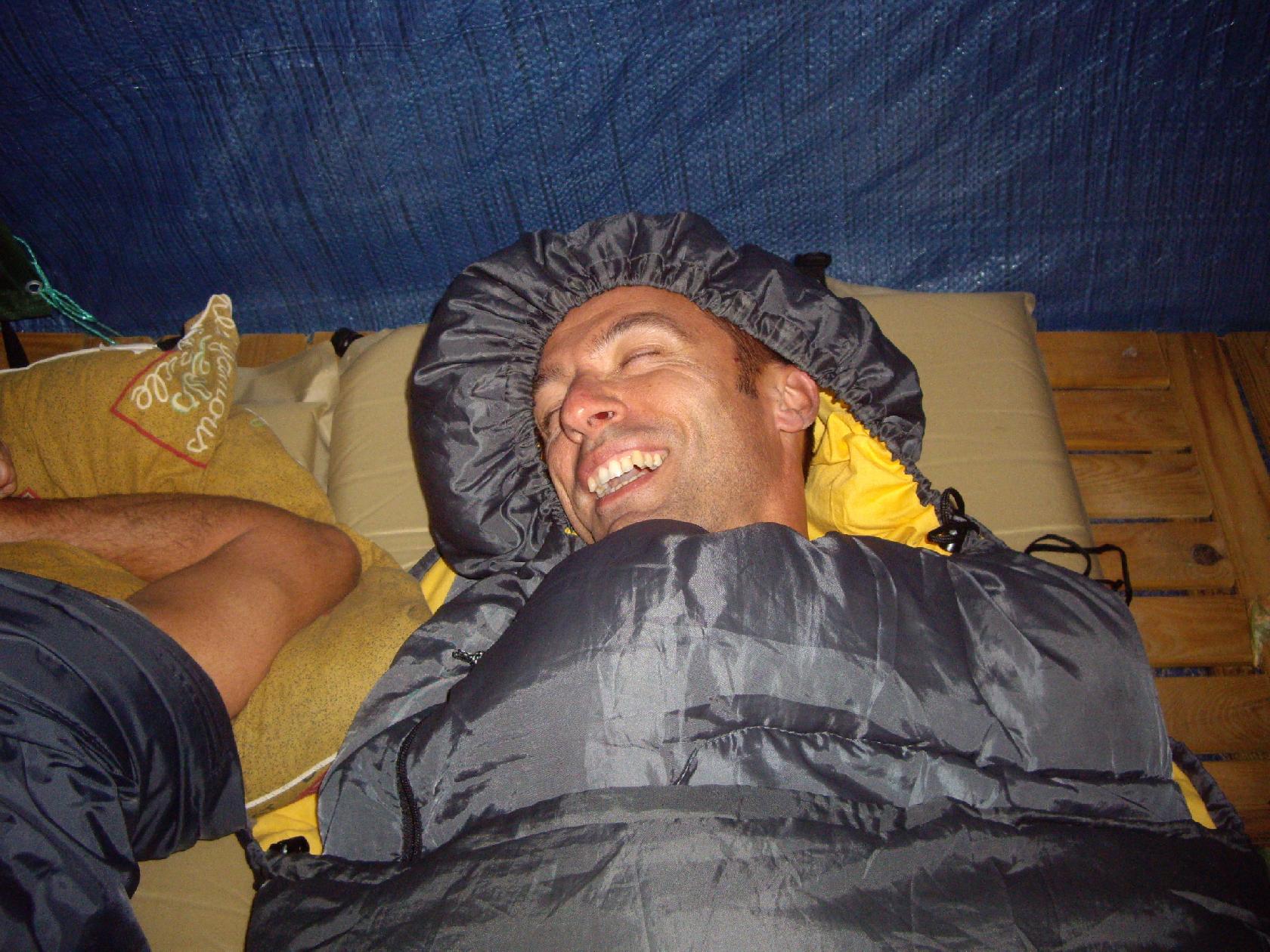 Vous voyez le petit duvet Kaki et rose...c'est le mien! Autant vous dire que je n'ai pas trop rigolé pendant cette nuit! Mais on s'en foutait avec Dom on avait un plan: Faire en sorte que la nuit de nos coloc soit la plus courte possible pour avoir une chance de les suivre le lendemain! Résultat: grosse marade et discution jusqu'à 1 h de mat et réveil pour tout le monde à 6h!!!!!!! Bon ok ça n'a pas marché sur le terrain comme on l'espérait! Mais qui ne tente rien, n'a rien!