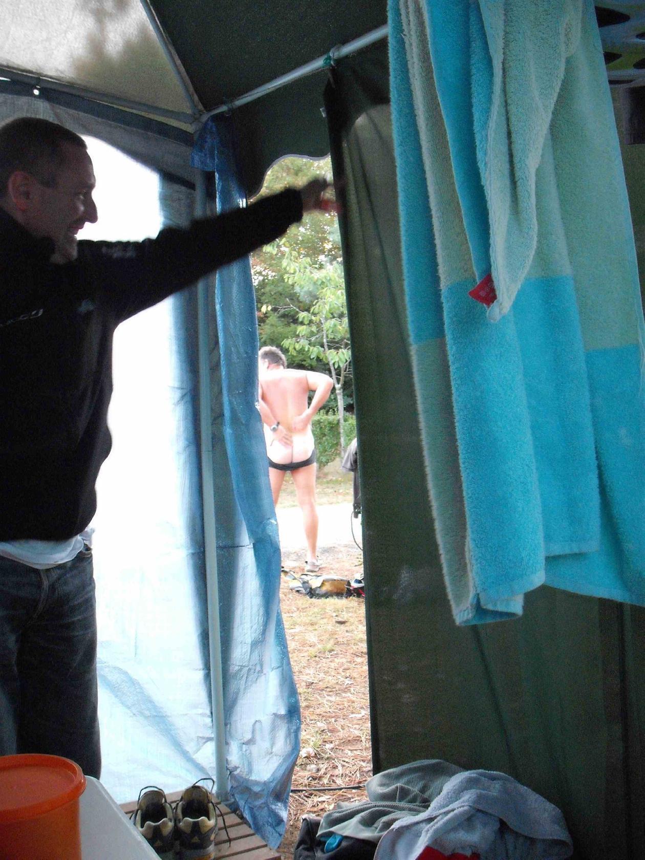 et en plein milieu du camping(mesdames, fermez les yeux...sauf Christine, après tout elle connait...nous aussi maintenant!)