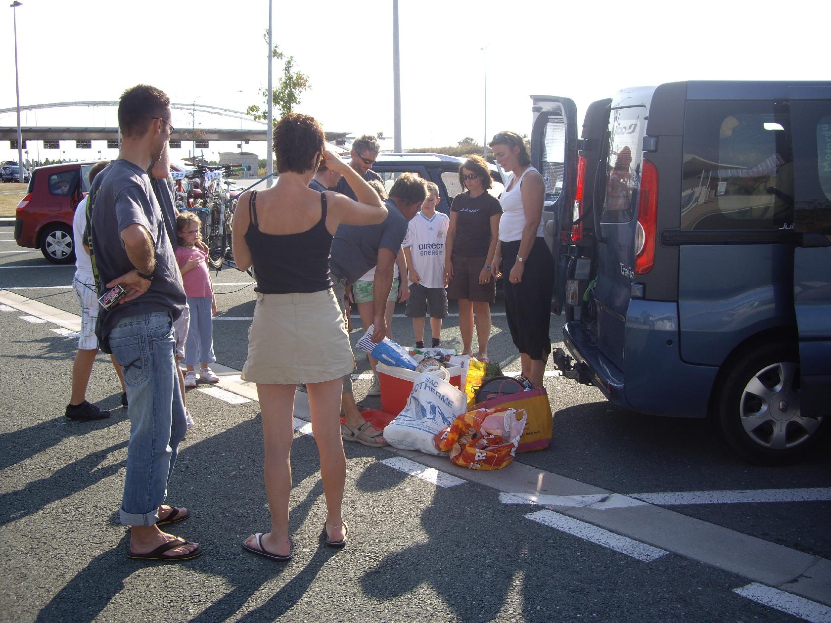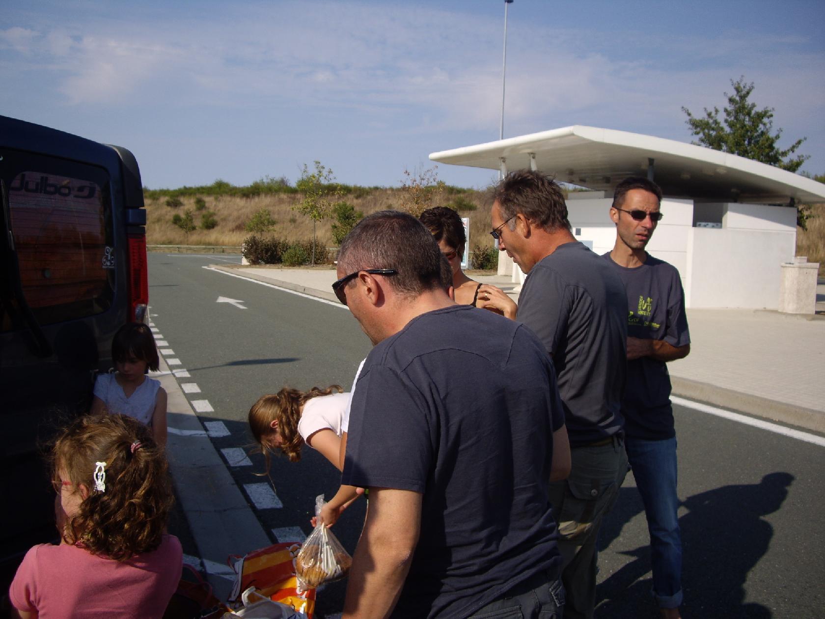 Mais toutes les bonnes choses ont une fin et on retrouve nos femmes et nos enfants sur une aire d'autoroute pour gouter. Et la ça pète de tee shirt de la VV