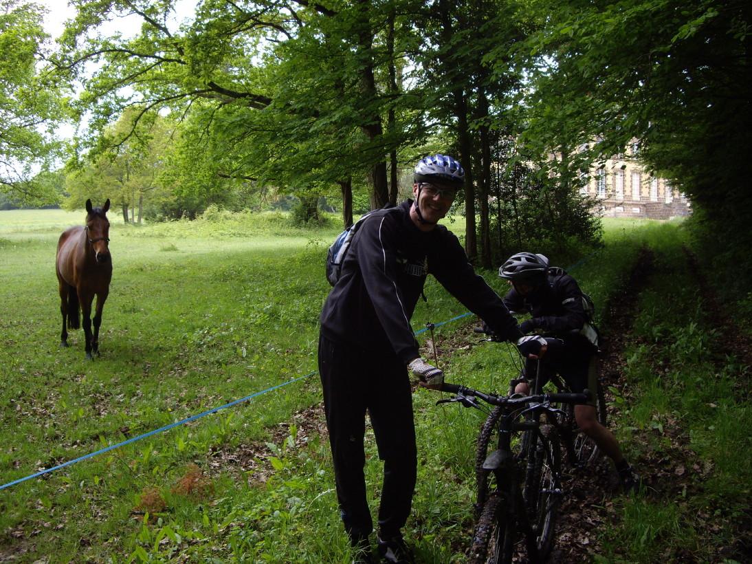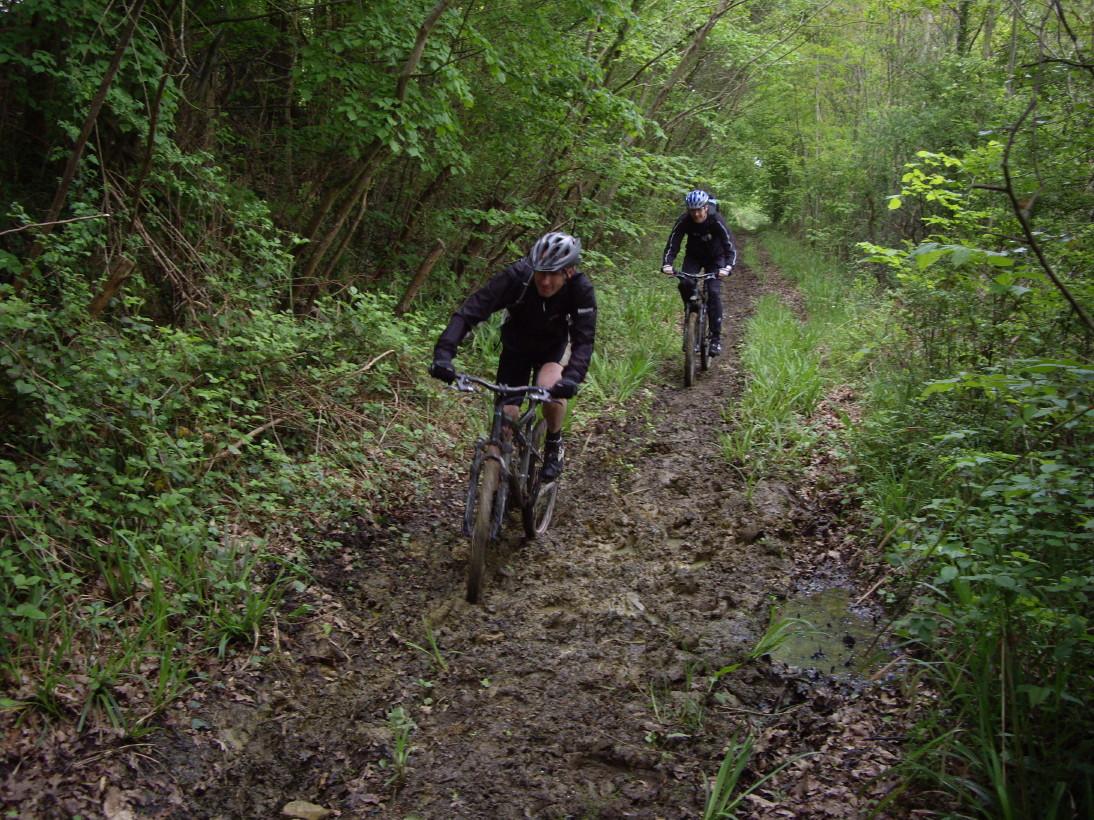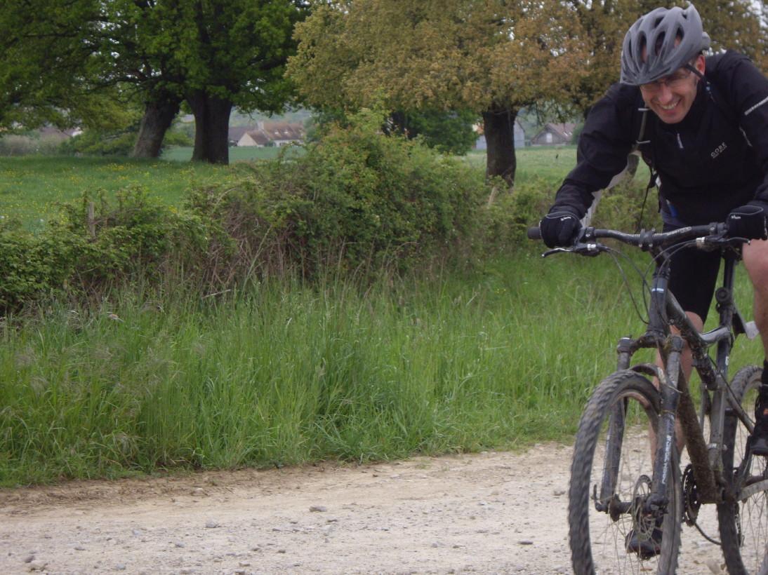 Nous voila parti sur des terrains gras qui m'ont vu chuter au ralenti dans une flaque d'eau au bout de 10 bornes...bientot imité par Gégé au chateau de pérochel