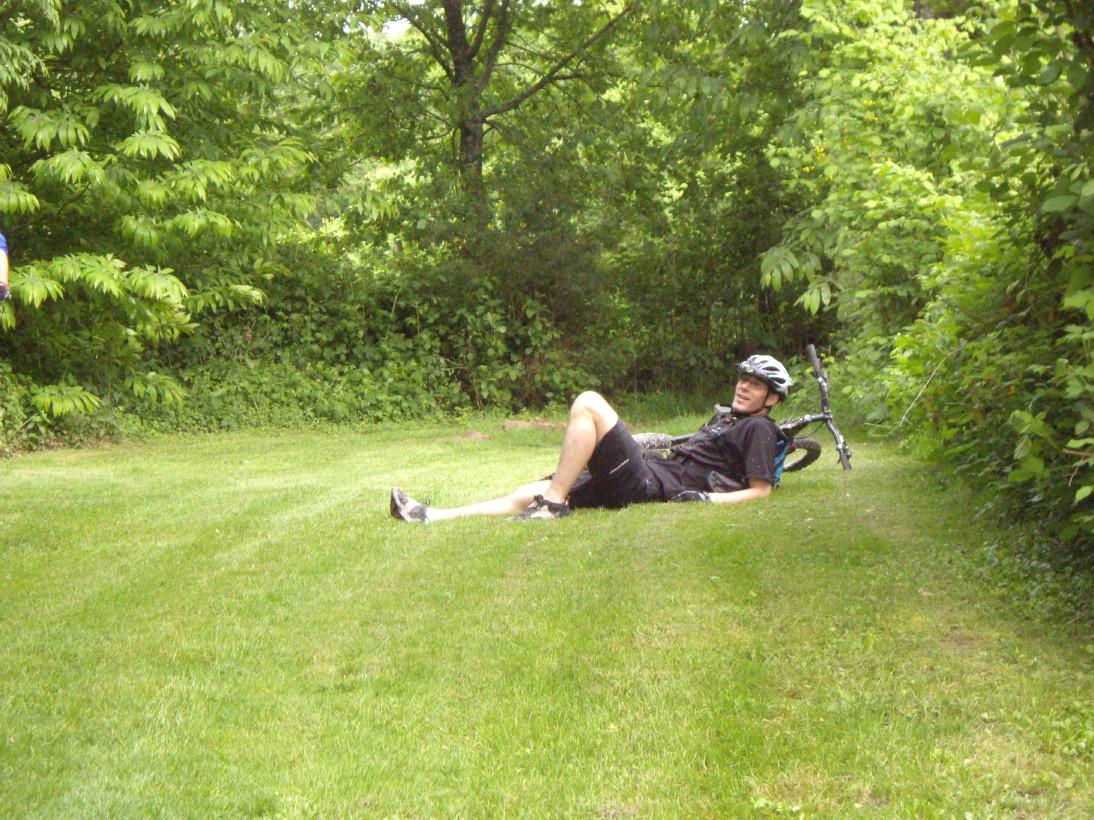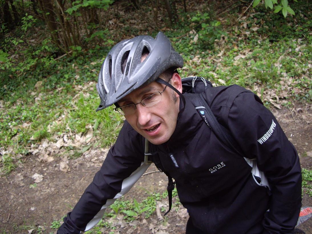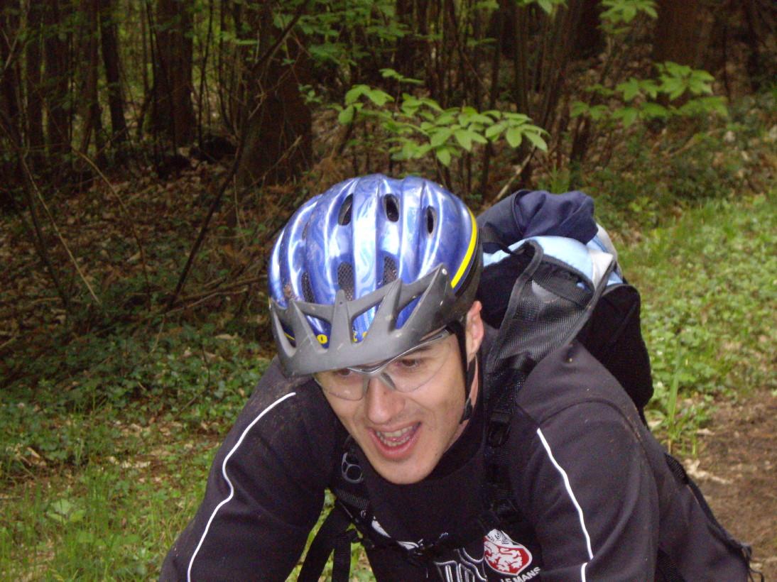 Mais bon, on évite un "taré", ou un "baisé de la caisse" (dixit Bull)...et on en récupère un autre...peut-être pire! Du style un de perdu et dix de retrouvés (puissance 10!!) J'ai nommé: Sylvain en basket avec le vtt de son beauf (un giant anthème quand même!) et un casque de gosse!!!