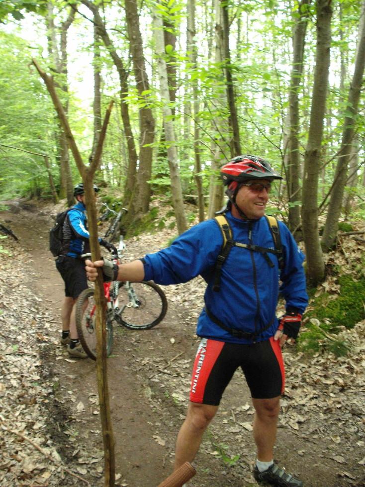 Comme promis, voici le vtt du gars Mika, même si nous on le préférait en Drésienne (vélo sans pédale ou tu pousses sur le sol pour avancer!).