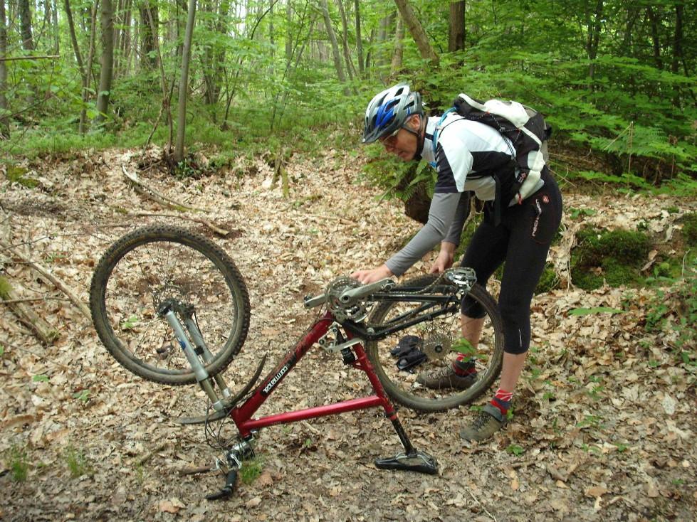 C'est à ce moment que Nafnaf choisi, avec son pédalage agressif, de casser sa chaine...histoire que je me fasse chambrer!!!! Soit disant j'aurai déja raté des réparations sur mon vtt...je ne vois pas de quoi on veut parler!!!!