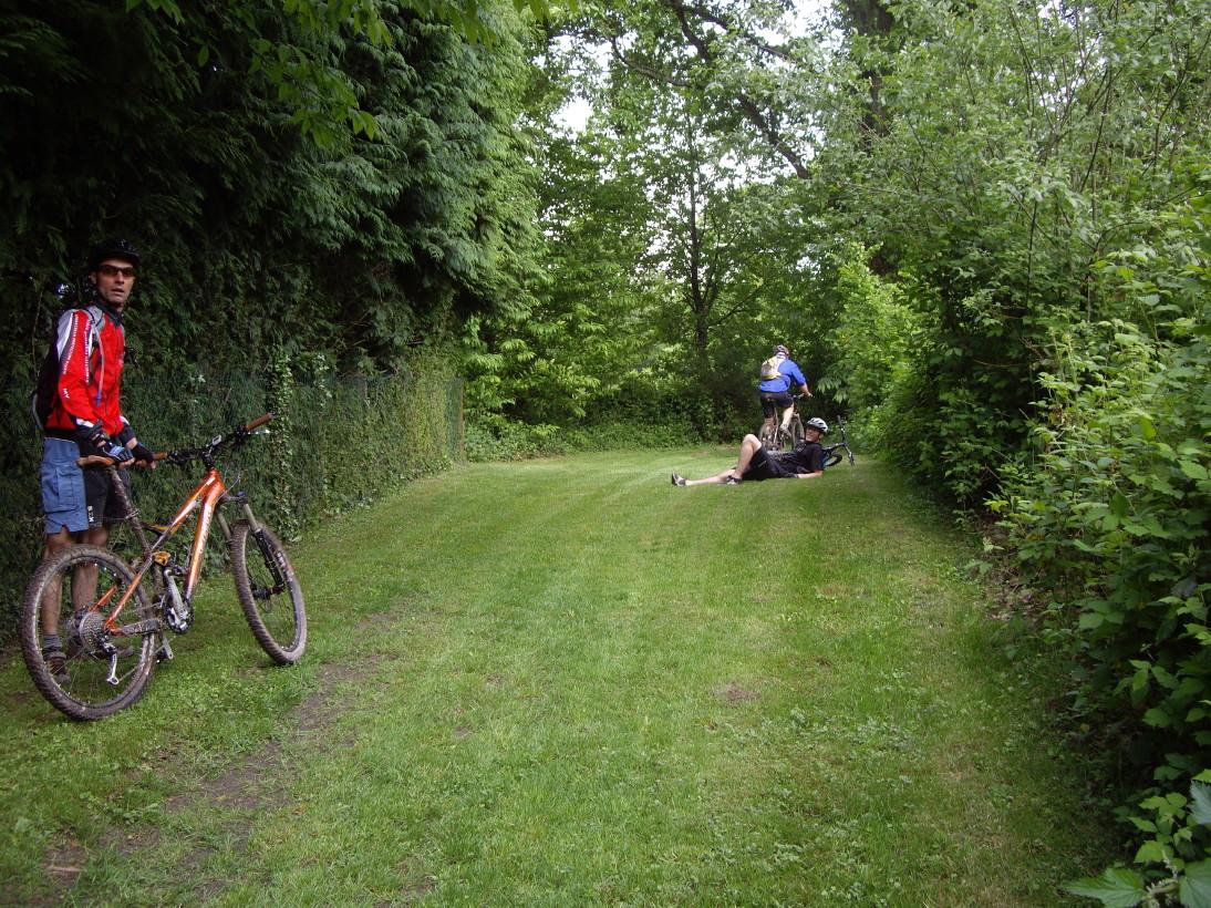 Deuxième sortie d'après transperseigne et on surfe sur la forme du moment! Faut dire qu'on a éviter un Mika revanchard en restant sur nos terres, sur la sortie que nous nommerons "l'oreille cassée". Et à cette oreille cassée, nous ajoutons une variante qui de la voie férrée remonte sur St Christophe et redescent sur cette même voie férrée par les chemins de la méridienne! Cette rallonge se nomme la "beldoche" eu égard au temps qu'elle rajoute au parcours, temps pendant lequel, L'escargot n'a pas à supporter sa belle mère!!!!!