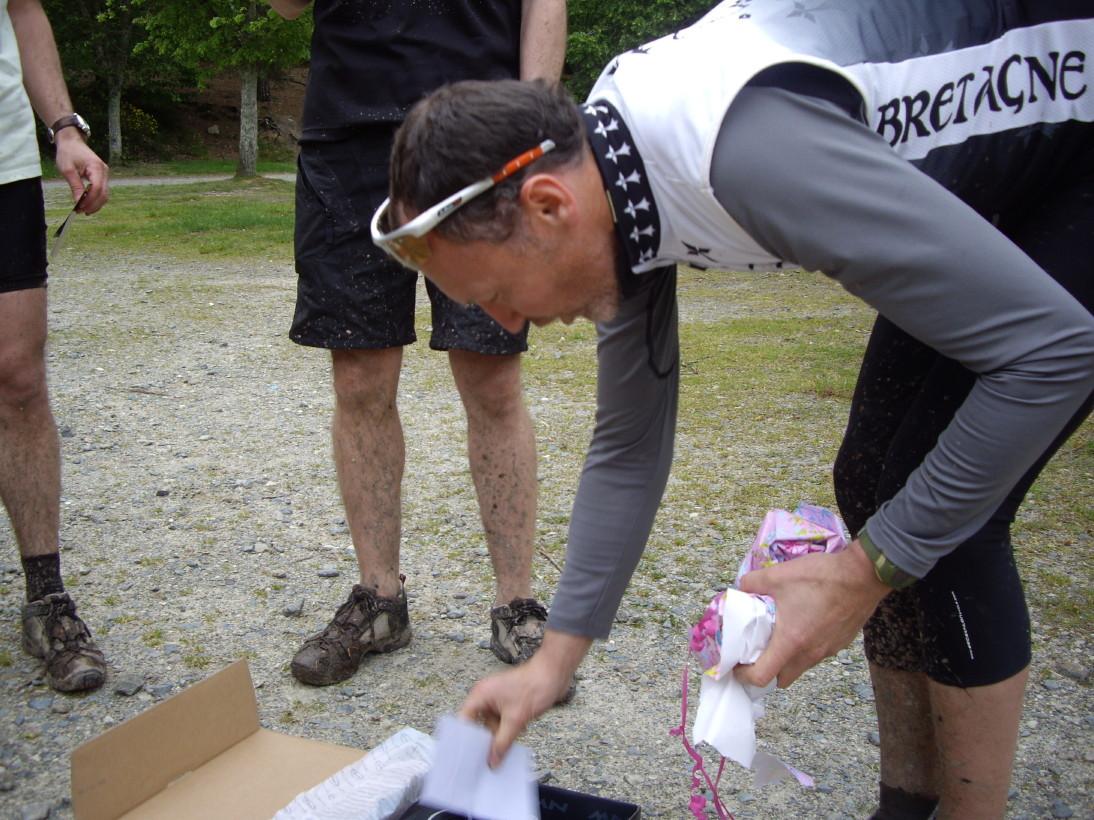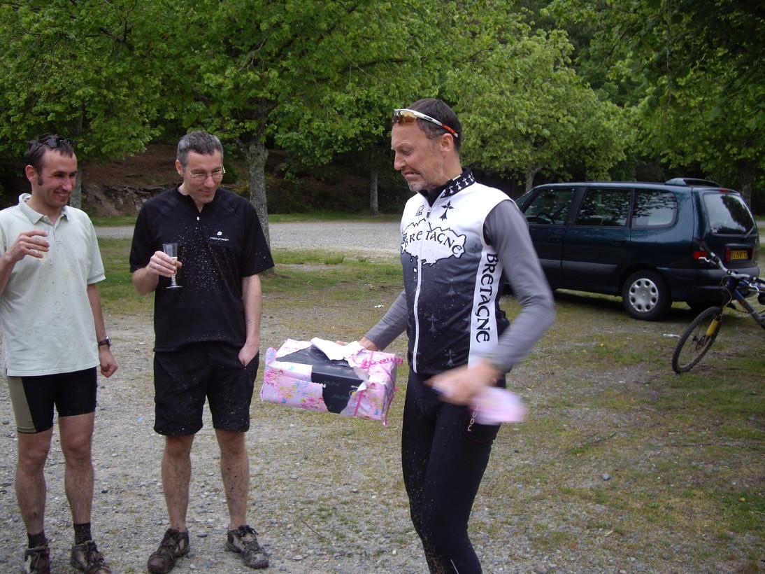 La je dis, bravo les gars. Pas une gaffe, pas un signe avant coureur, pas d'erreur dans l'échange des mails...vous êtes forts, même quand vous n'êtes pas sur un vtt, mais ça ce n'est pas une surprise (le fait que vous soyez fort)! Même le boucher (cotes de Boeuf) avait gaffé, mais je ne m'en suis même pas rendu-compte! Je ne suis pas assez suspicieux...mais ça va me rendre parano!!!! Maintenant, à chaque fois que Nafnaf (ou Mamaf, pour le Bull!) voudra rouler sur Sillé, je me méfierai!!! En tout cas merci à tous, pour l'organisation de cet évènement, pour vous êtes libérés pour la grande gueule que je suis (après Dom), d'avoir fait à bouffer. Et Patricia n'avait pas tort, rien ne pouvait me faire plus plaisir que de passer un moment avec vous!!!!
