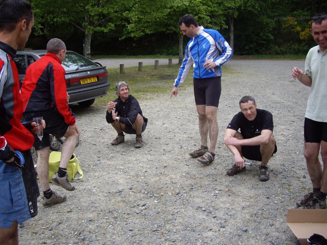 Que des gars en bleu. Pourtant, LE BLEU n'était pas la (M&S alias Philippe). Ou alors c'est une façon pour la "Slow team" (comprenez la branche lente du groupe...ou plutôt un certain état d'esprit pour pratiquer le vtt que certains d'entre vous n'a pas!!!) de se reconnaitre. Un groupe est né a l'intérieur de nos différents groupes. Ca devient le bordel.
