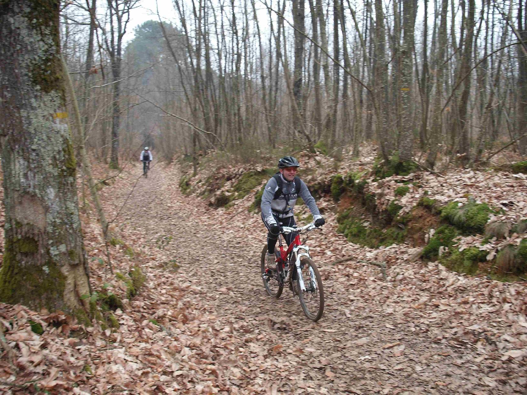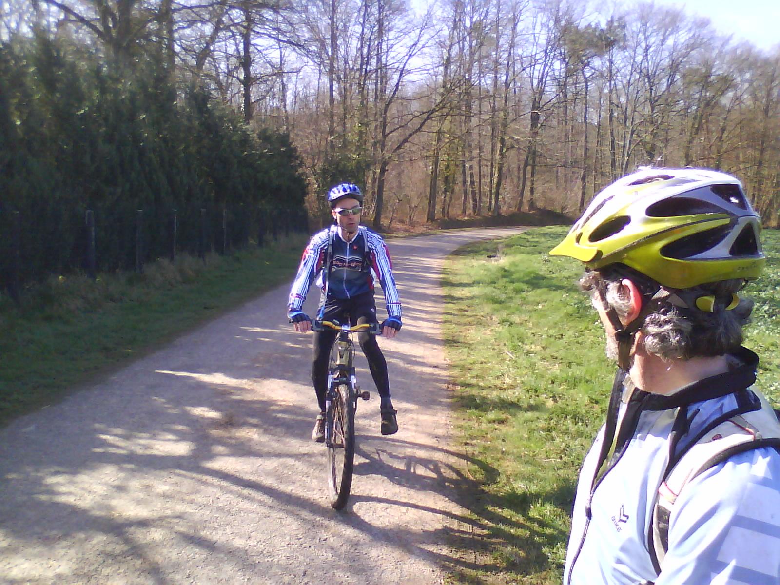 Juste avant la montée du foll car et les crampes de Bruno! C'était il y a bien longtemps et c'était même le premier article de ce blog). D'ailleurs après un passage (pas si éclair que ça , because la cote) en forêt de Sillé, nous somme revenu par les chemin de cette méridienne nous évitant au passage la fameuse cote qui a donné son nom à ...Vomito!