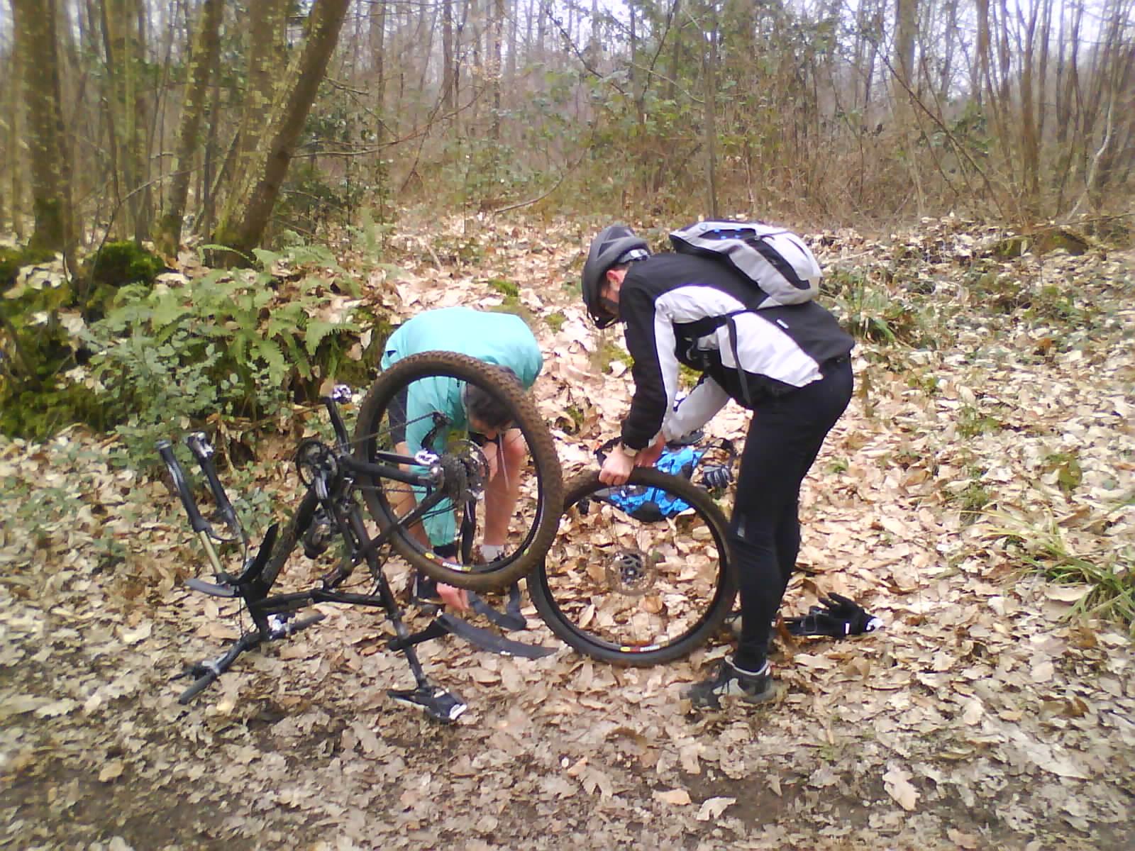 . Le mieux c'est que 3 crevaisons ont égayées notre sortie (Hugo et stephane en jaune façon Pika). Pour le coup on récupère vraiment