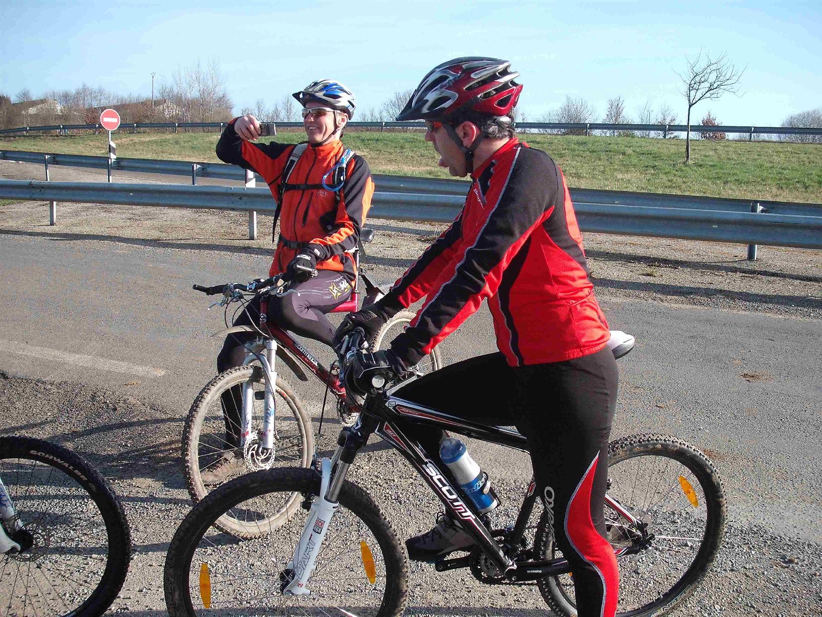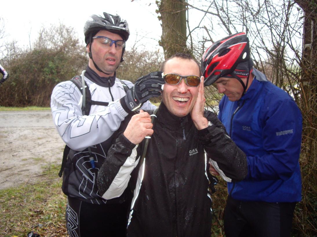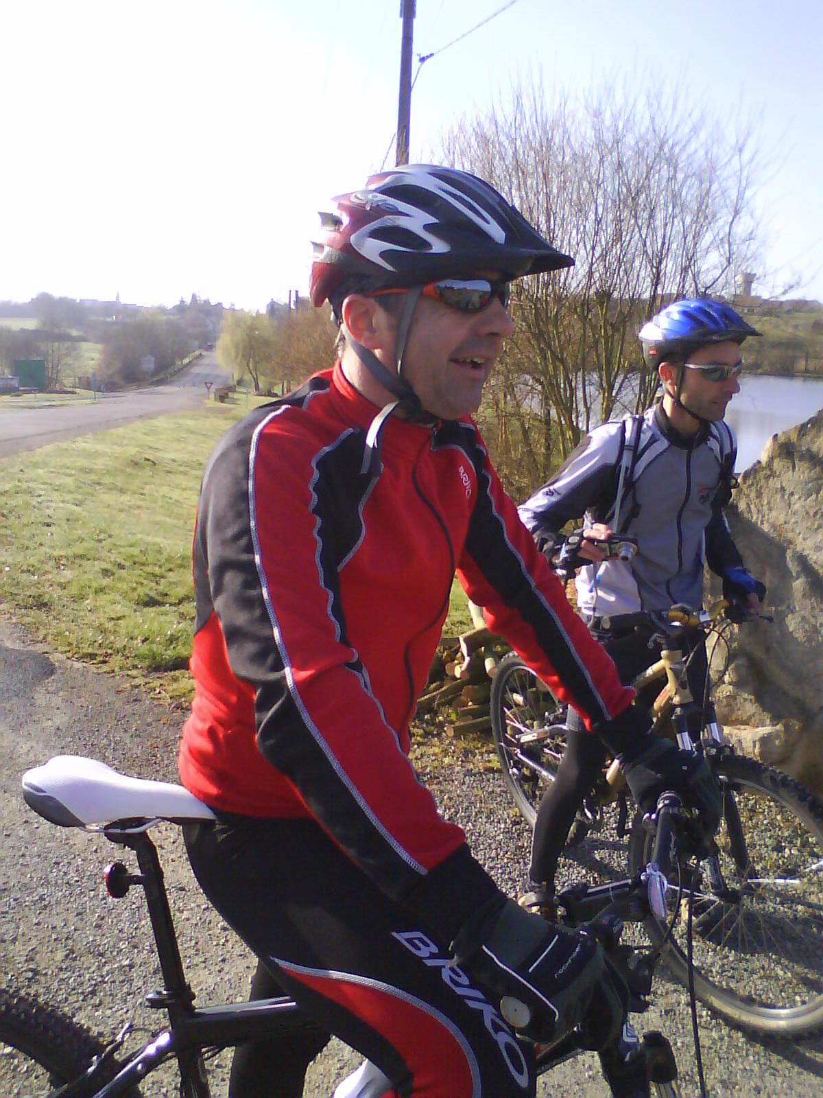 Et les gars en rouge suivaient plutôt bien. En fait Philippe qui n'avait pas roulé de puis un moment ne m'inquiète pas vraiment quant à ses capacités! Encore un qui va faire mal dans quelques temps. La solution le faire tomber, son point faible étant le dos!!!!