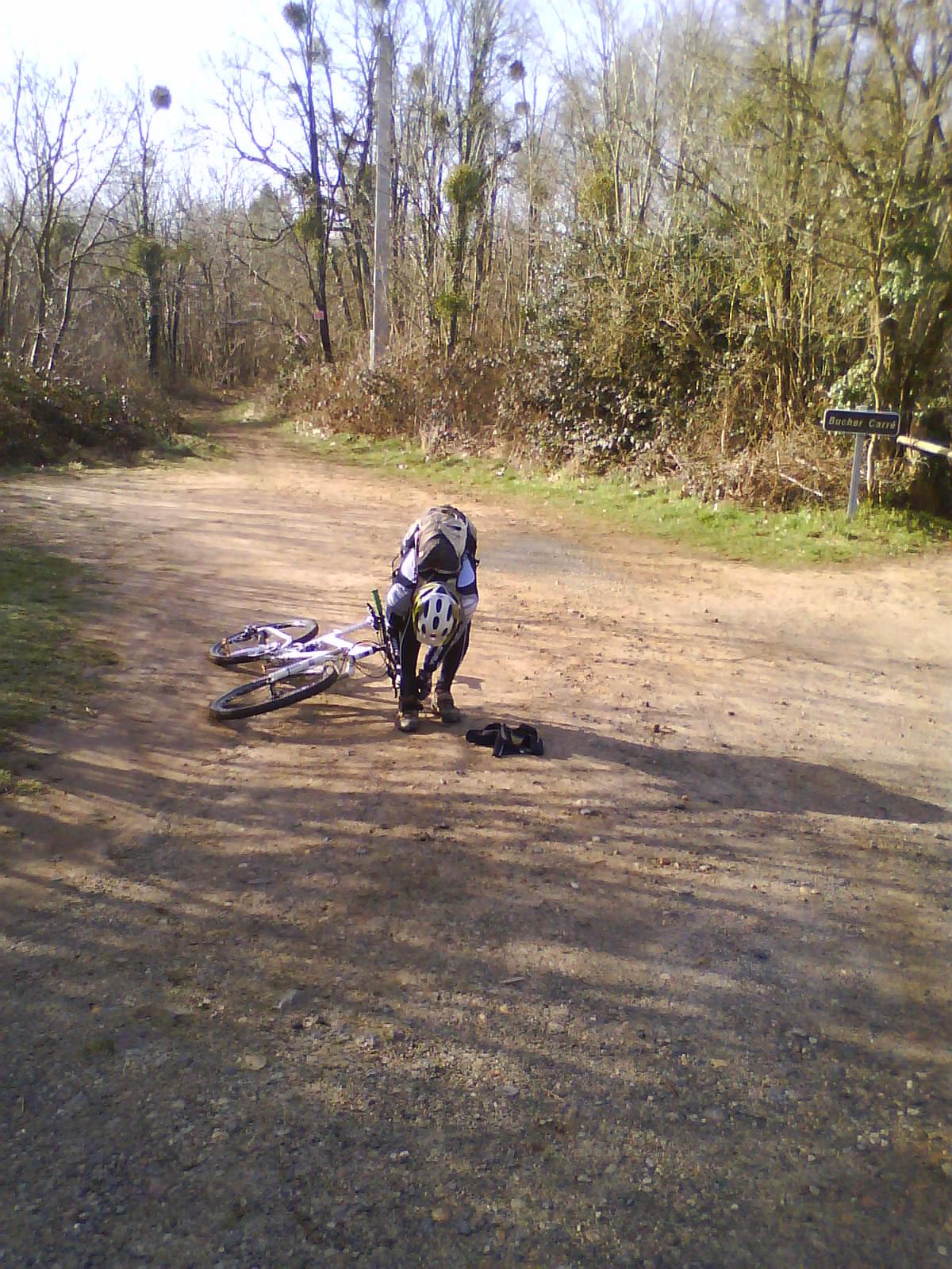 Oui oui vous avez bien lu! Cet empaphé a attendu le seul dimanche ou je n'étais pas dispo pour rouler!!! Bizarre. Ils sont donc (avec le futur acheteur de tout suspendu...à savoir Nafnaf) parti faire 25 bornes sur la noire de Sillé (coupe de la fin et de 2 montées sévères)...Y a plus facile comme reprise! On ne les a toujours pas retrouvés!