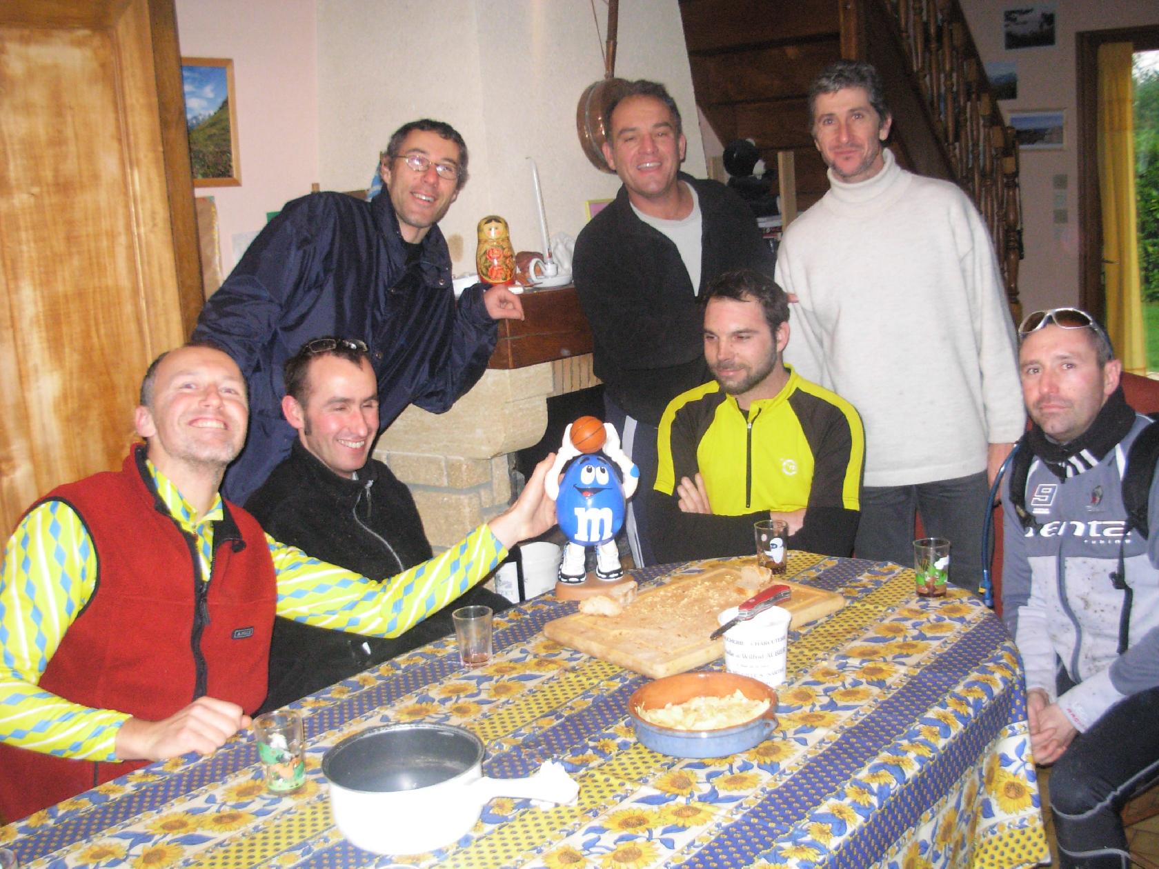 , Nut, Bruno qui est en train de passer d'Astérix à Obélix!!!, moi et.....Mns bleu! Eh oui enfin (rappelez vous , le vin chaud chez les Pernès!)