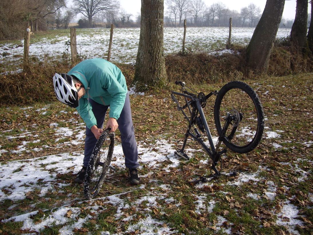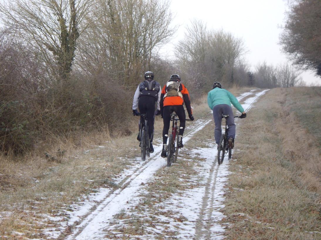 Pour aller rouler ce matin dans le froid toride de la sarthe (-8° au départ de Neuville), il fallait être salement motivé! Et motivés , nous l'étions , nous les 2 rescapés du VDD (Nafnaf+Coach):